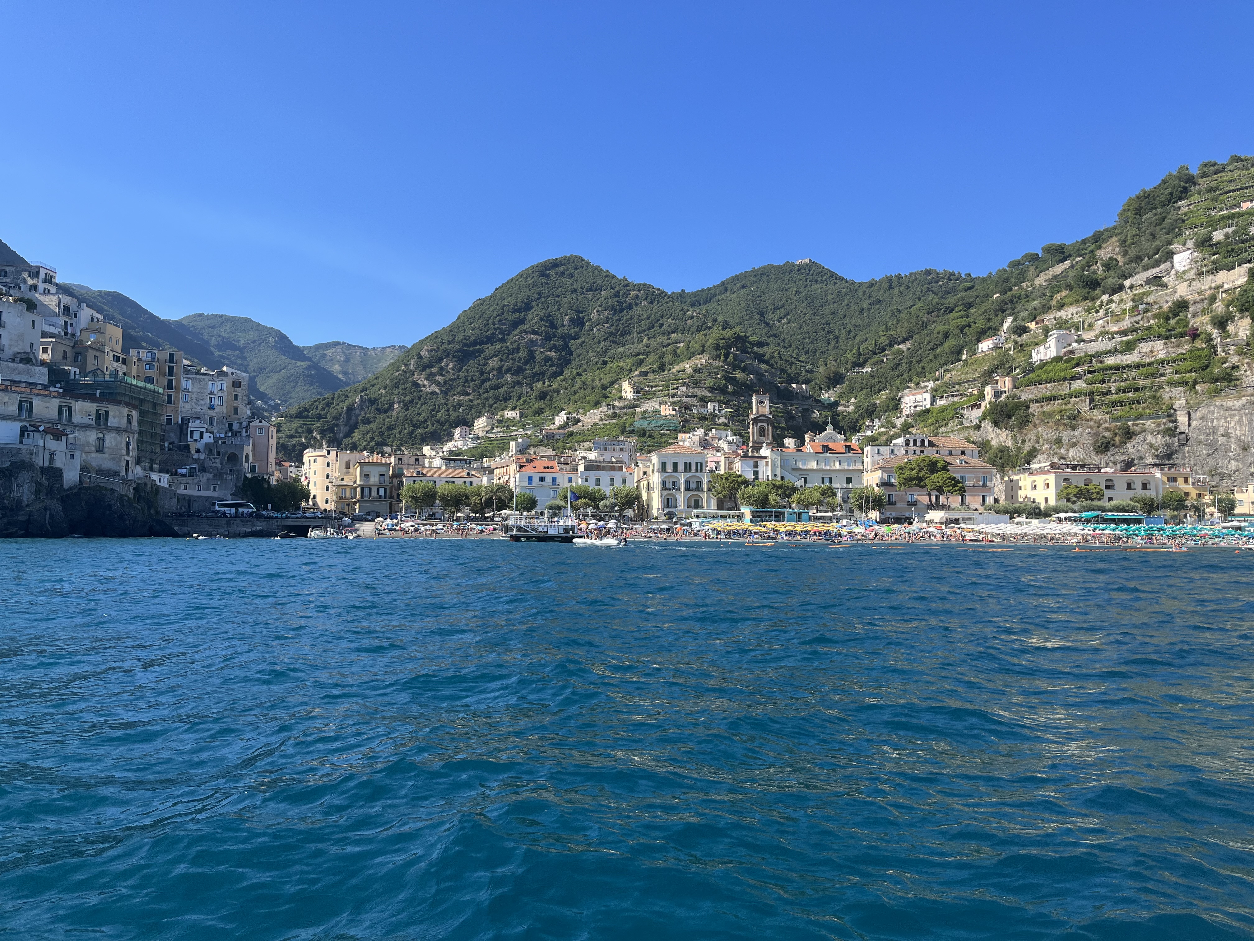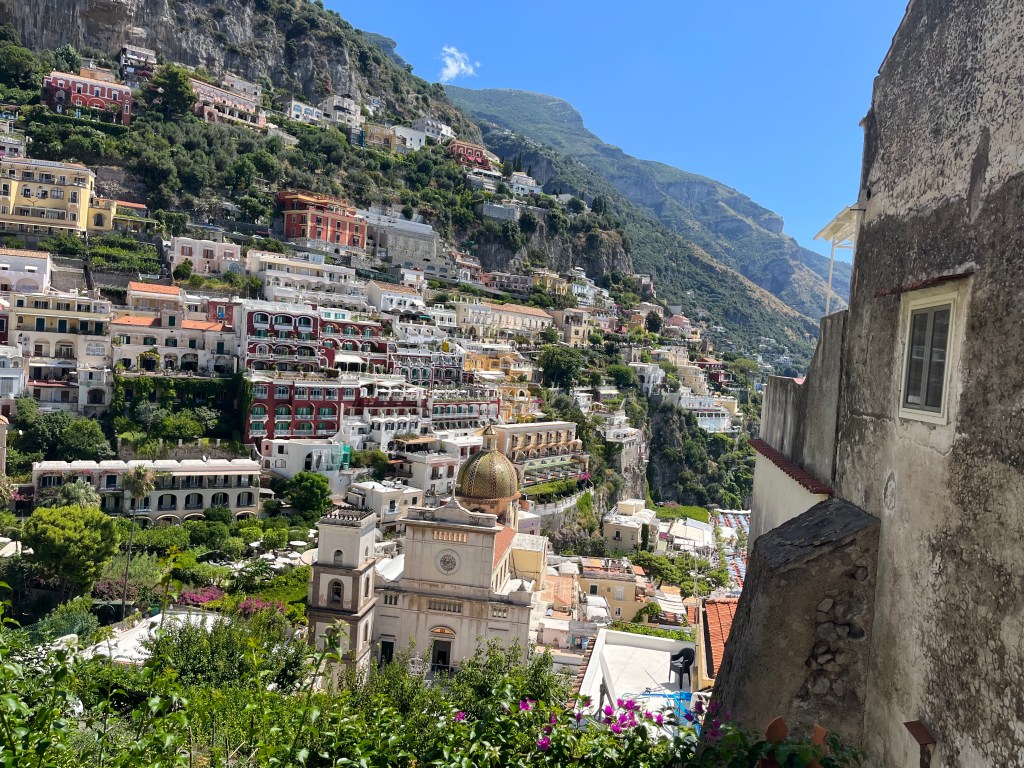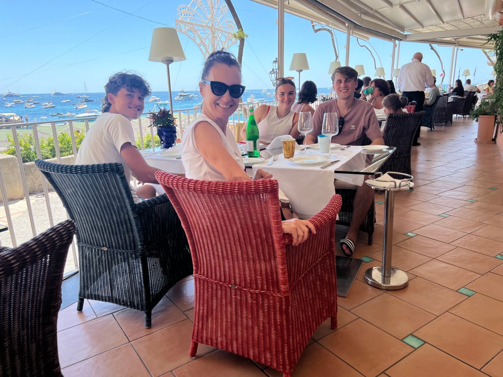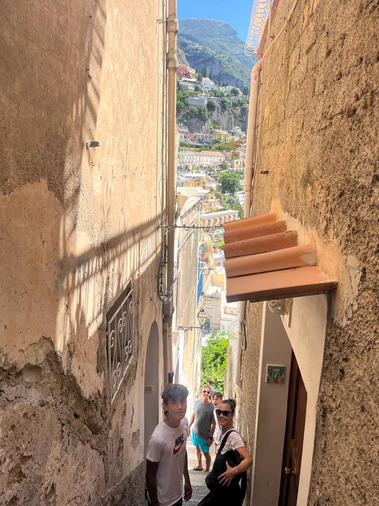 When we were trying to dock the boat in Positano so we could get off, the water was crazy choppy, the boat did not want to stop moving and Michael was trying to hold tight onto the metal ring to keep us steady. He may be thin, but that kid is strong! We were all able to get out. We made a spectacle out of ourselves in the process (as usual) but whatever! We spent the afternoon walking up to see the views and stopping for minestrone, pasta and gelato.