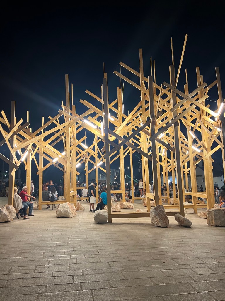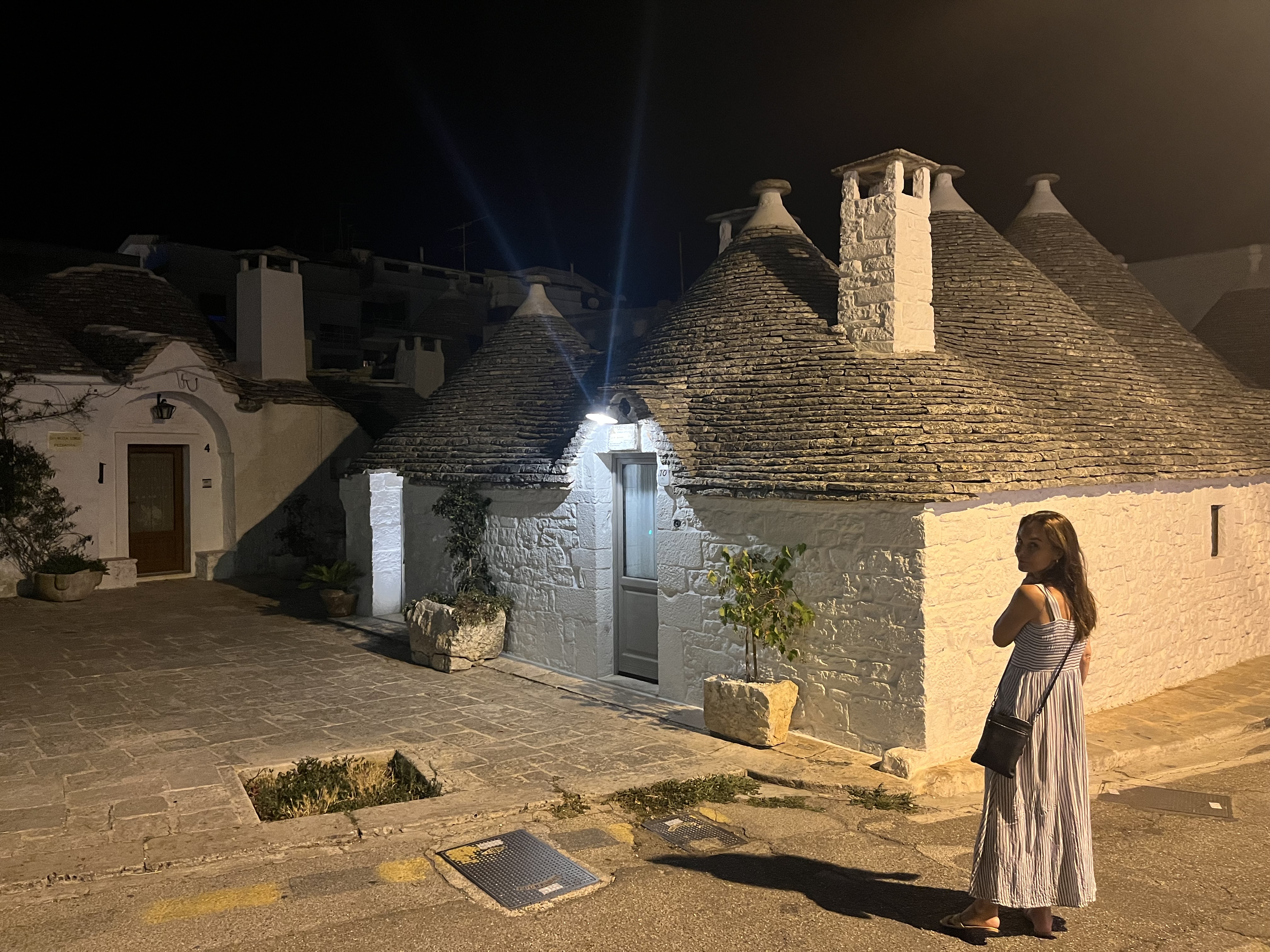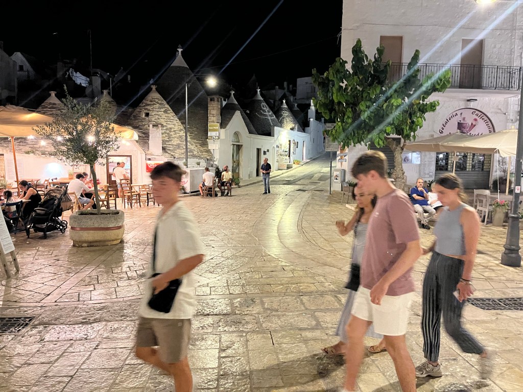 There is a town in Puglia called Alberobello. It has super narrow streets and everywhere you look, there are Trulli cones. I had never heard of them before. They are Apulian dry stone huts. I felt like I was walking around a fairytale. There was a full moon that night, a guy in the piazza playing a grand piano and this wood structure thing that I think was art that people could just hang out on. Italians know how to live life well. Spending time with your people in beautiful surroundings, listening to good music, dancing and eating yummy food!