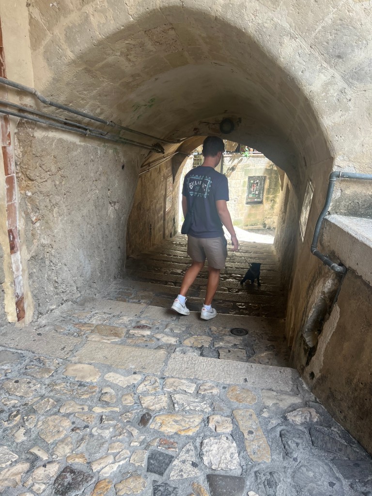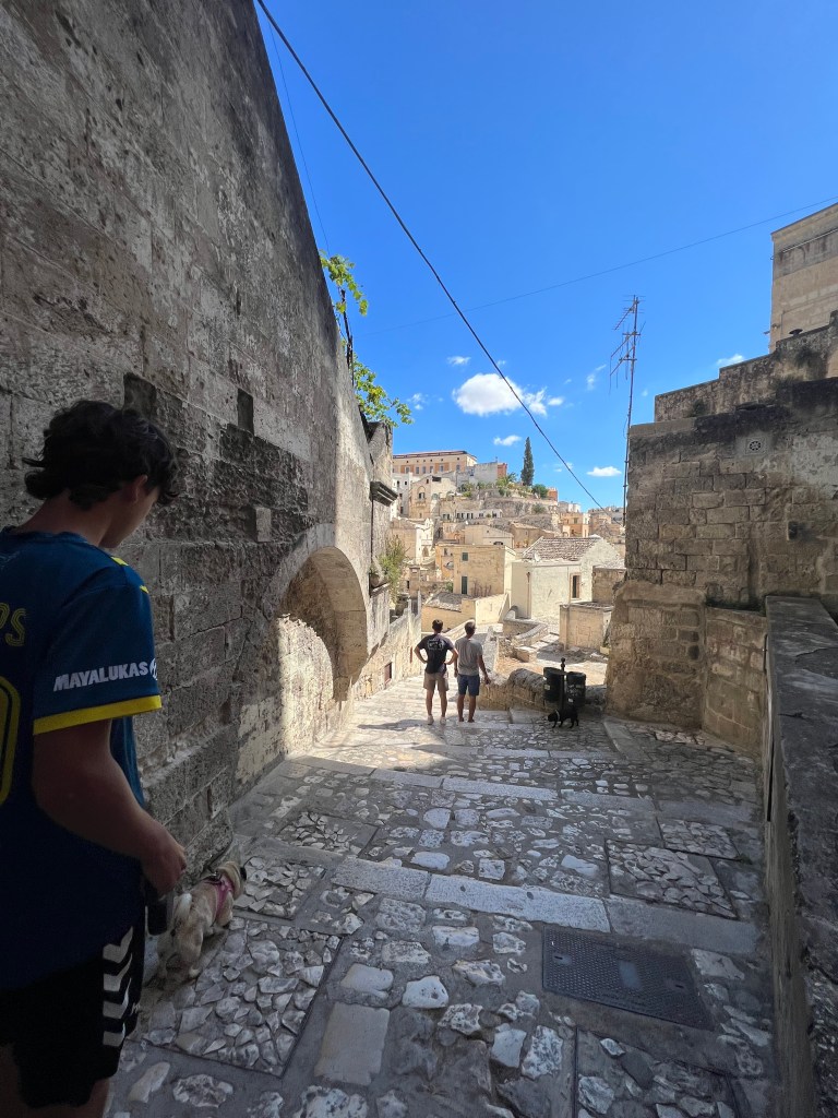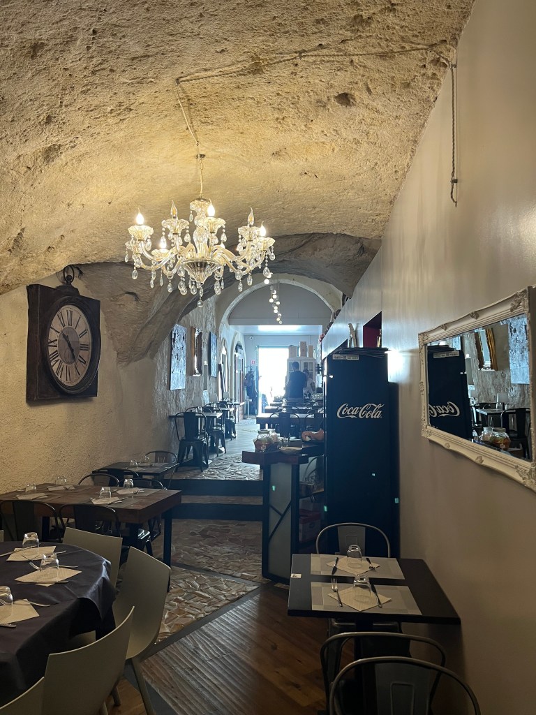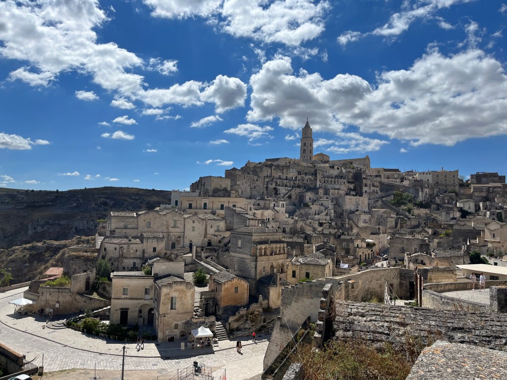 Matera is an ancient city. Its history goes back about 30,000 years. It is on the border of Basilicata and Puglia. It is worth a visit to see all the caves, winding pathways and amazing views. I thought the caves were called sassis, but I read that sassi means stone. Most of the structures look as if they are made of stone. When you go into them, you realize a lot of them are caves. They were inhabited since prehistoric times! Apparently, Matera did not have a modernized plumbing system even as recent as the 1950s. The government had a plan to evacuate all the people living in the caves because of poverty and diseases and destroy it all. Academics came in and found evidence that people had been living in the caves since 7,000 BC. Neolithic tools were found as well as a 150,000 year old skeleton. People moved back into the caves and many have been renovated into restaurants and hotels. In 1993 it became a UNESCO World Heritage site. UNESCO is an acronym for United Nations Educational, Scientific and Cultural Organization. So that pretty much means that the city is legally protected for having a cultural, historical or scientific significance to the world. Pretty cool!