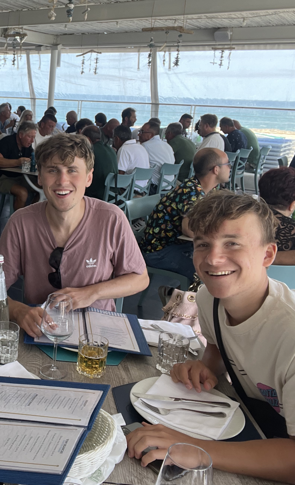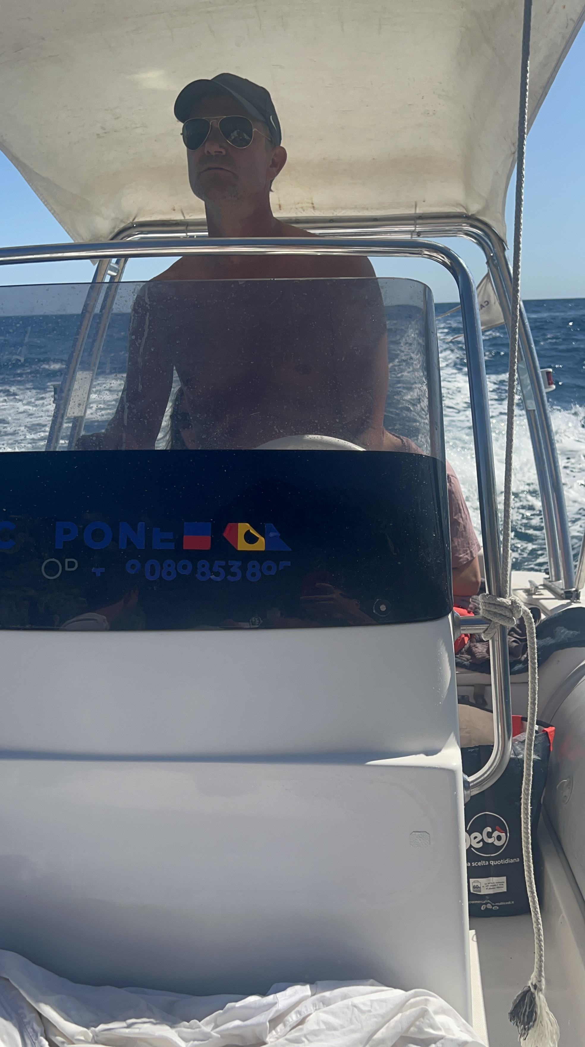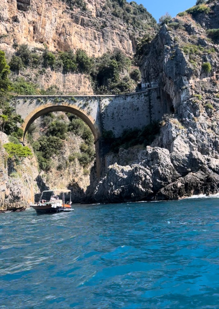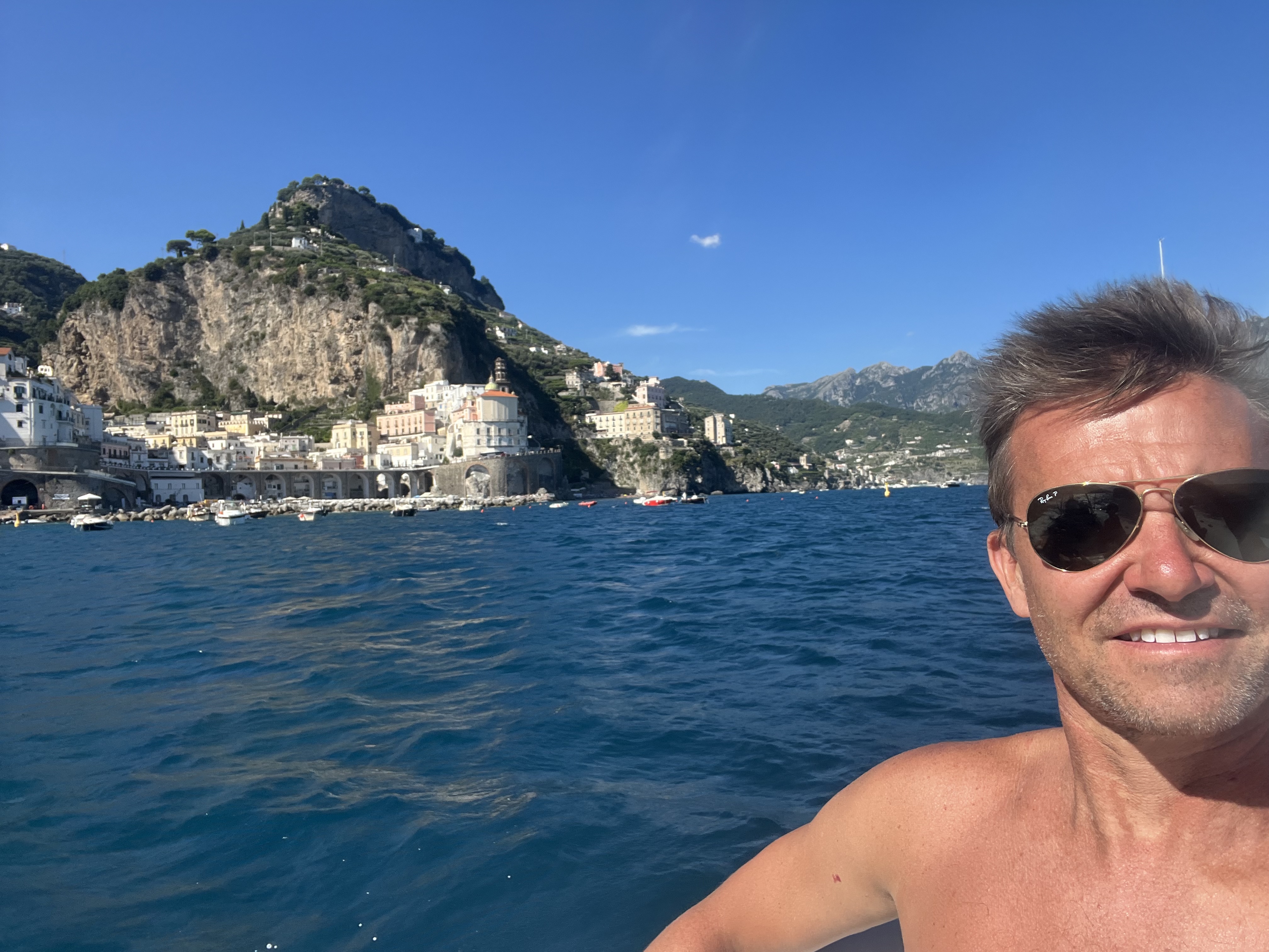 When Jesse went to swim back to the boat with Lennon, the boat was gone! He had anchored it, but they couldn’t find it anywhere. He walked up to a man on the beach and told him our boat was gone. The guy didn’t speak much English and said that it was not his problem. Jesse talked to him for a bit and asked for help. The guy radioed a co-worker then told Jesse “your boata moveda.” Somehow the boat unmoored itself and traveled closer to shore. Jesse, Lennon and Michael went to get it and Lennon got hit in the head with the anchor as he and Michael were pulling it up. But everyone survived! Jesse navigated the absolute mayhem well. There were tourists upon tourists! Boats coming and going. I have to say these cities are beautiful but the amount of people is outrageous and a scoop of gelato costs a small fortune. Give me an old village with good coffee and friendly people and I could walk around for hours. Anyhoo – all’s well that ends well! We got back in the boat and went searching for more fun stuff to do and see.