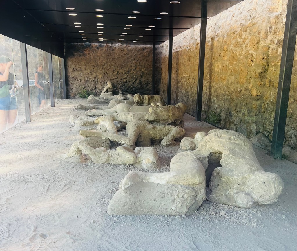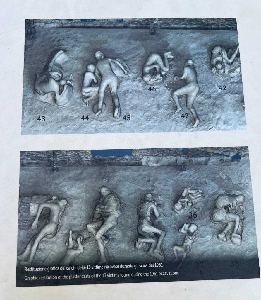 The following is taken from a plaque next to the Orto dei Fuggiaschi which is the Garden of the Fugitives. That’s the of the photo where there is a glass case enclosing 13 casts, the one where there are numerous lights overhead:
