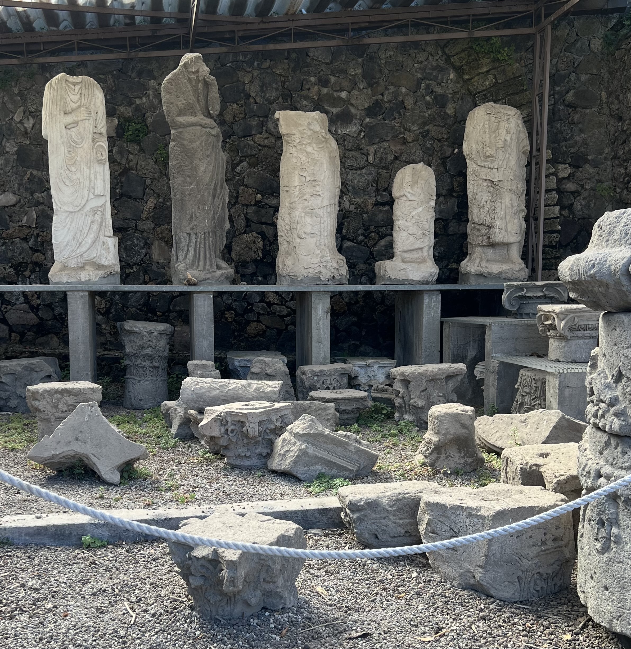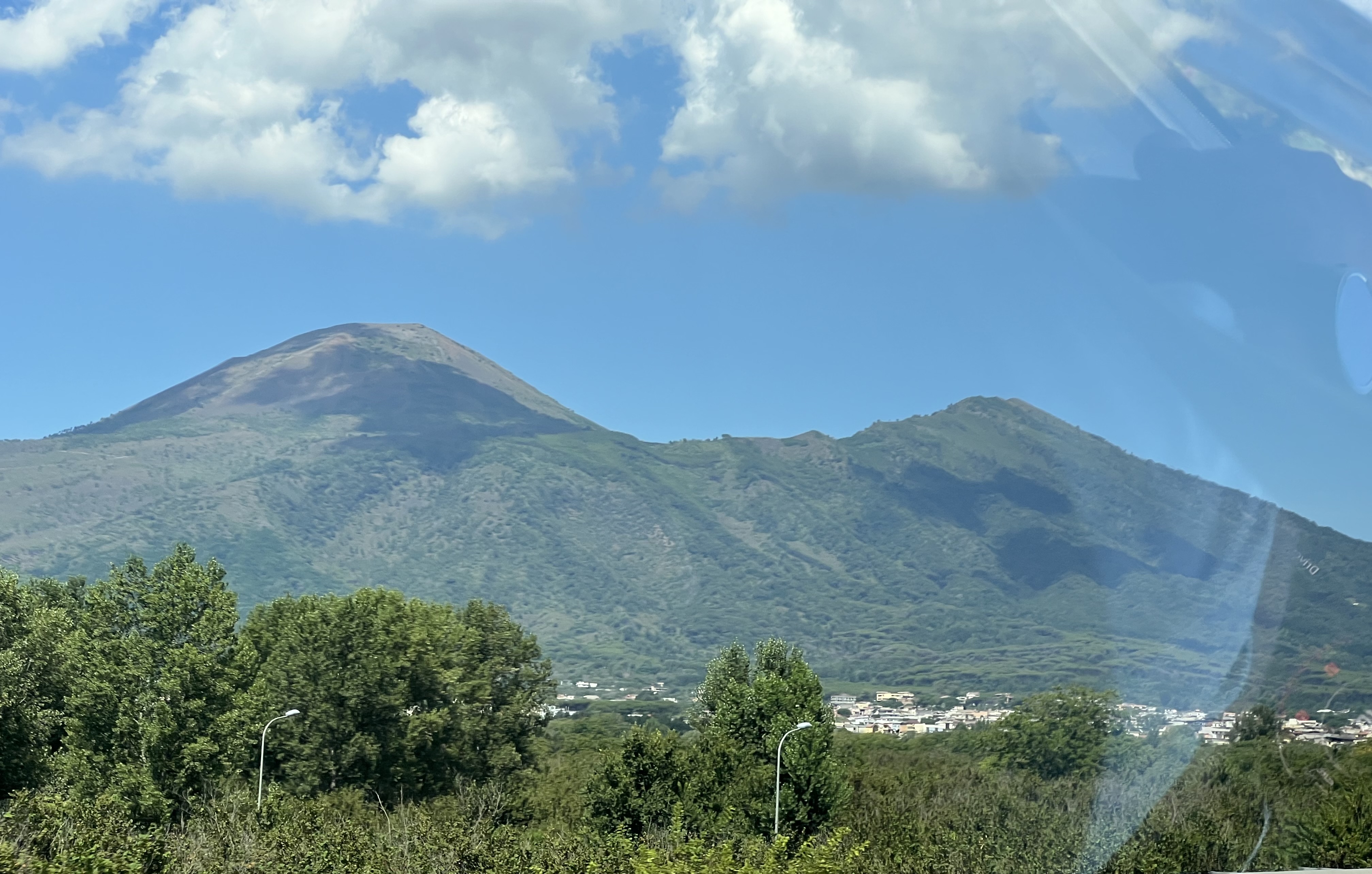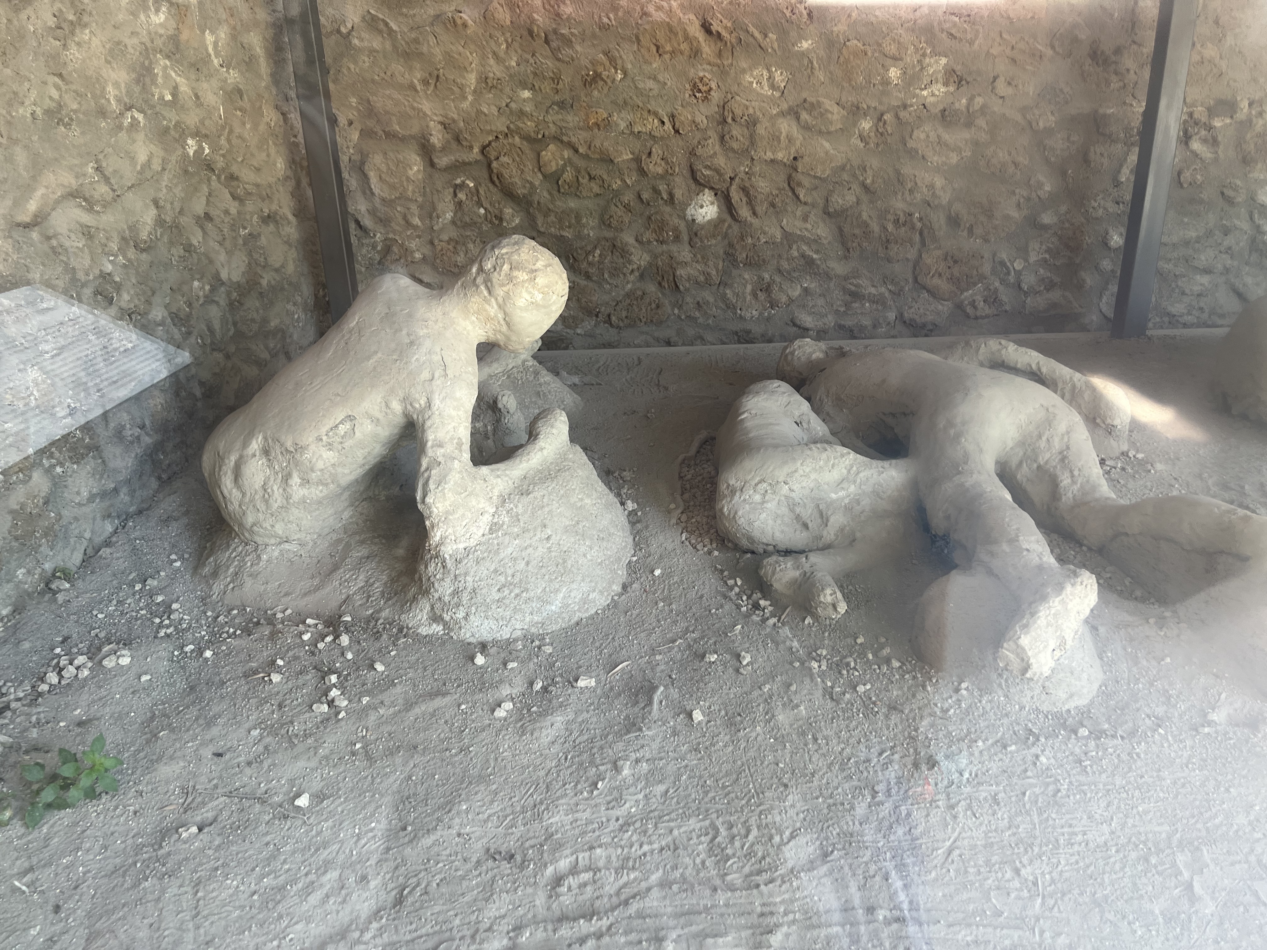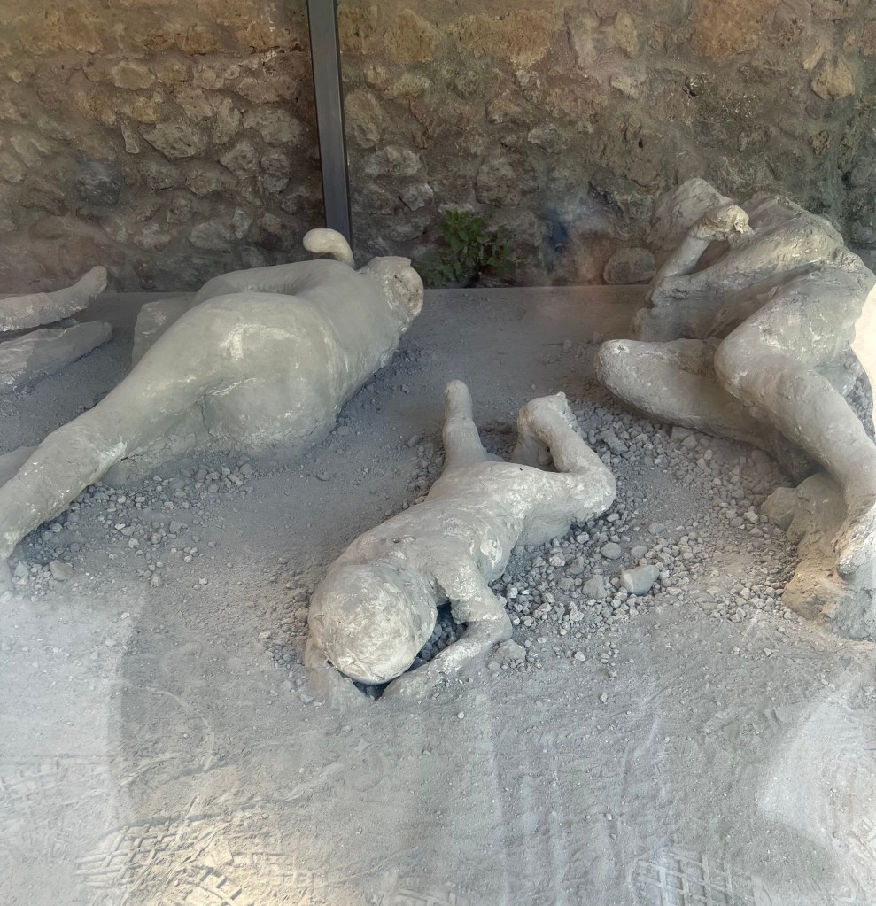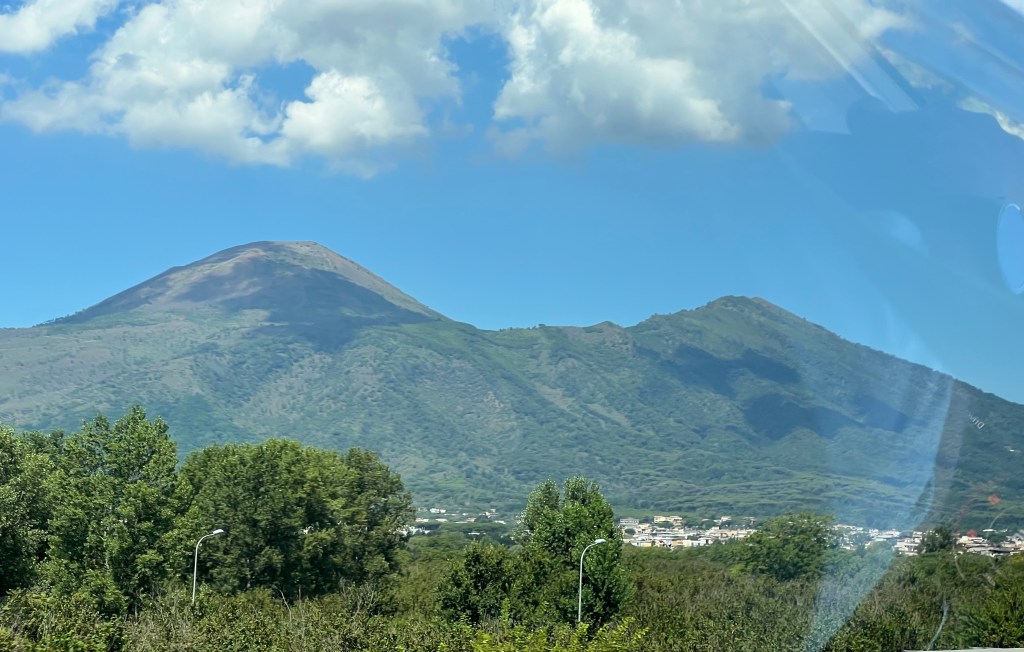I remember vividly learning about Pompeii and the eruption of Mount Vesuvius in school. The images of people in their final moments stuck with me. I wanted to know all about it. Fast forward to our travels and the opportunity to take a detour to visit the city. I absolutely had to see it. It was a fiercely hot day and we were on our way to Rome for a couple of days so we had Maizy and Dottie in the car with us. We did our research and found out you can take dogs inside if they are small and you carry them. That was convenient, otherwise we would have had to go in shifts.