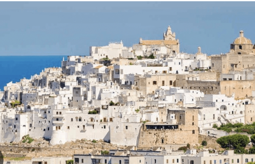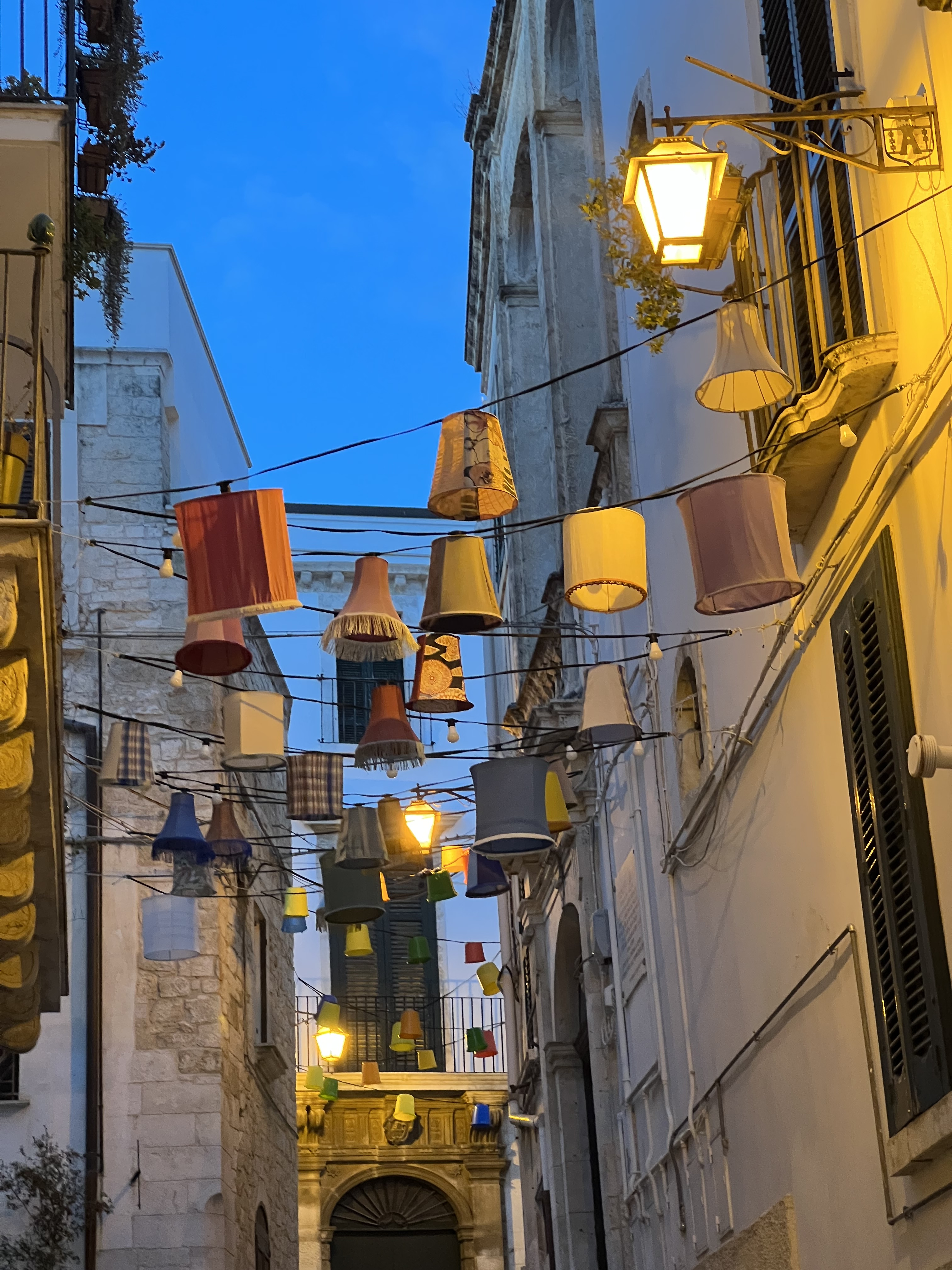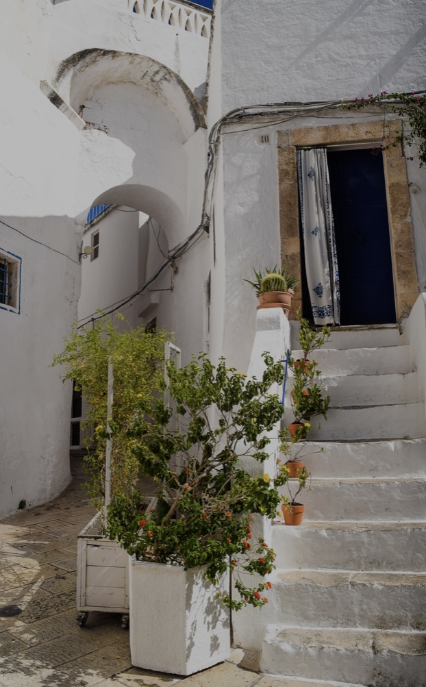 So I heard a couple different stories while we were visiting Ostuni. One was that many years ago they did not have a way of warding off possible invaders. Because the city wasn’t really planned out and buildings were just built on top of each other in no strategic manner, the inhabitants hoped that intruders would simply get lost trying to navigate the city. Then someone had the idea to paint all the buildings white with a mixture of limestone mixed with water. The plan was for the sun to reflect off of the white city and blind enemies. This also proved advantageous when a plague devastated Puglia in the 17th century. Only a few villages survived. Ostuni was one of them. They discovered that white lime had antibacterial properties, so there was less illness in the houses painted white. Some people thought that the people being saved was a miracle brought about by the patron saint Sant’Oronzo who they honor every year from August 25th through the 27th. They continue to whitewash the city to this day.
