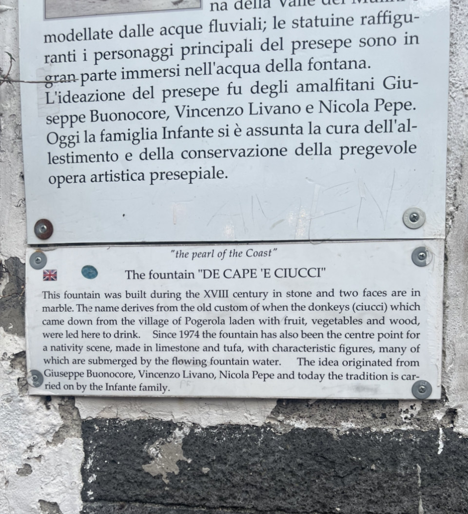 Also known as the Amalfi Nativity Fountain and the Donkey’s Head Fountain.