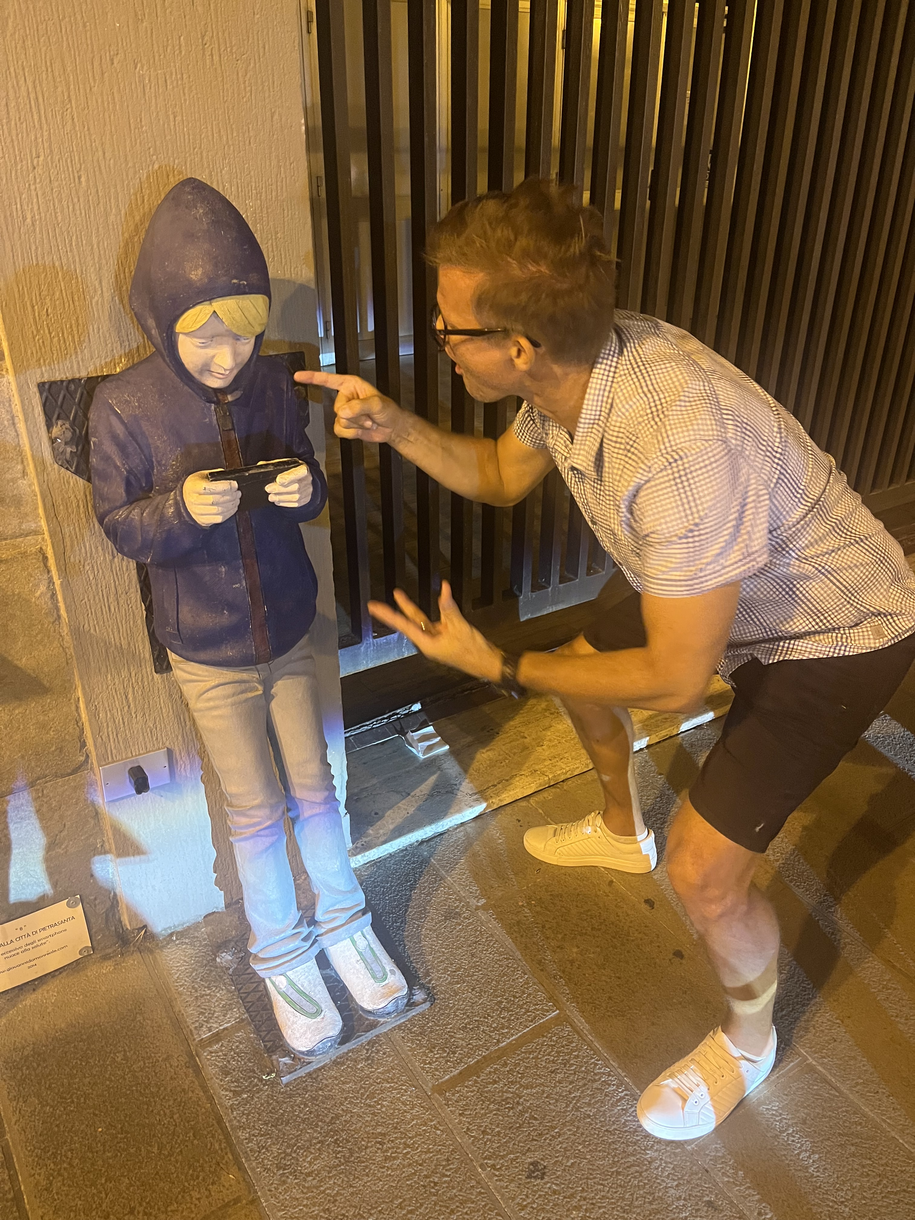We walk by this kid often in the village of Pietrasanta. I wanted to replicate what the boy is doing, but Jesse chose to go off on the kid for always being on his cell phone!