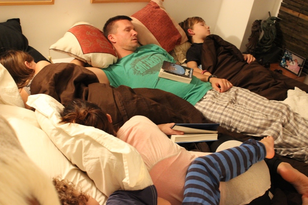 I found this picture on our camera while scrolling through photos this morning. Clinton must have found us to be a funny sight. Last I remembered -I was reading, Jesse was researching India and the kids were talking about their day. 🙂