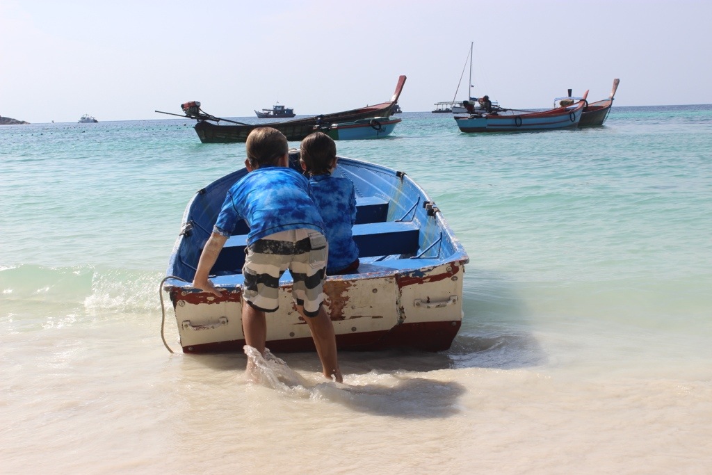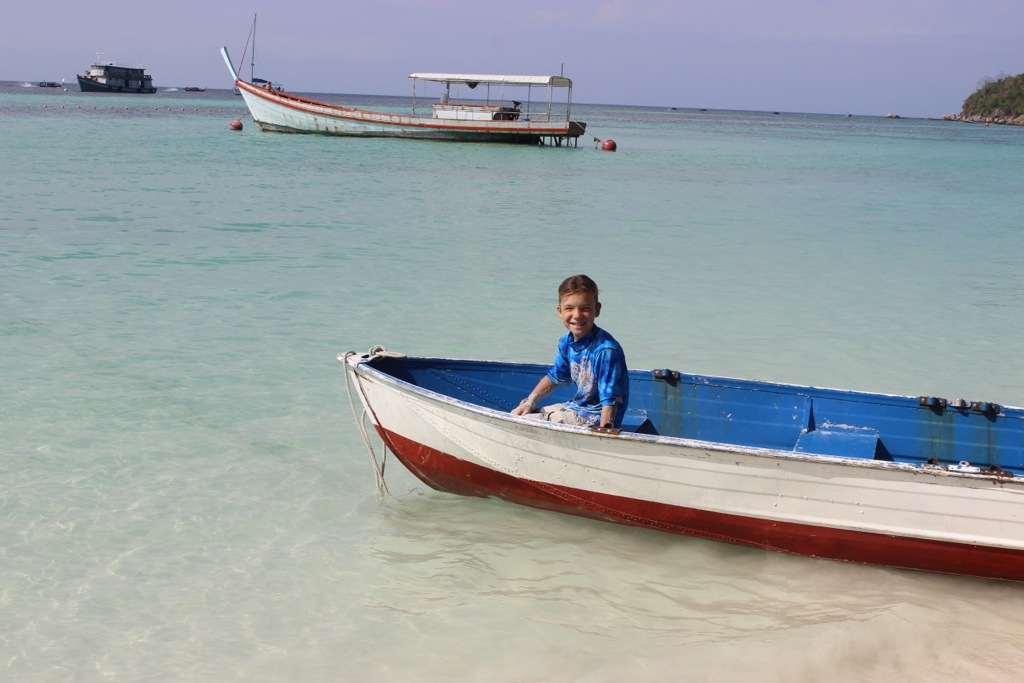 Angie, it was an incredible place. Maddux loved the boats! I have never been to a place where the air is a perfect temperature all the time, so is the water, the sand. We moved on, though. In Trang, Thailand now. Heading to Bangkok tomorrow am. Love! k