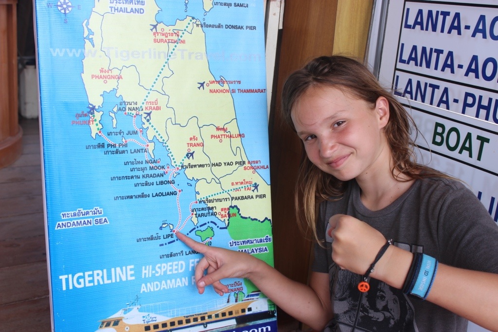 Emerson handled the whole situation amazingly well. She is one tough cookie! I was going to post a picture of her with shaving cream on her face saying she was foaming at the mouth, but no one else thought it was as funny as I did. She chose these photos instead. One is her pointing at the island of lipe working through some anger issues toward that dog. In the other picture, she is pointing at koh lanta. A really nice island with fewer strays wandering the streets. She was much happier! “What doesn’t kill you, makes you stronger!”