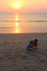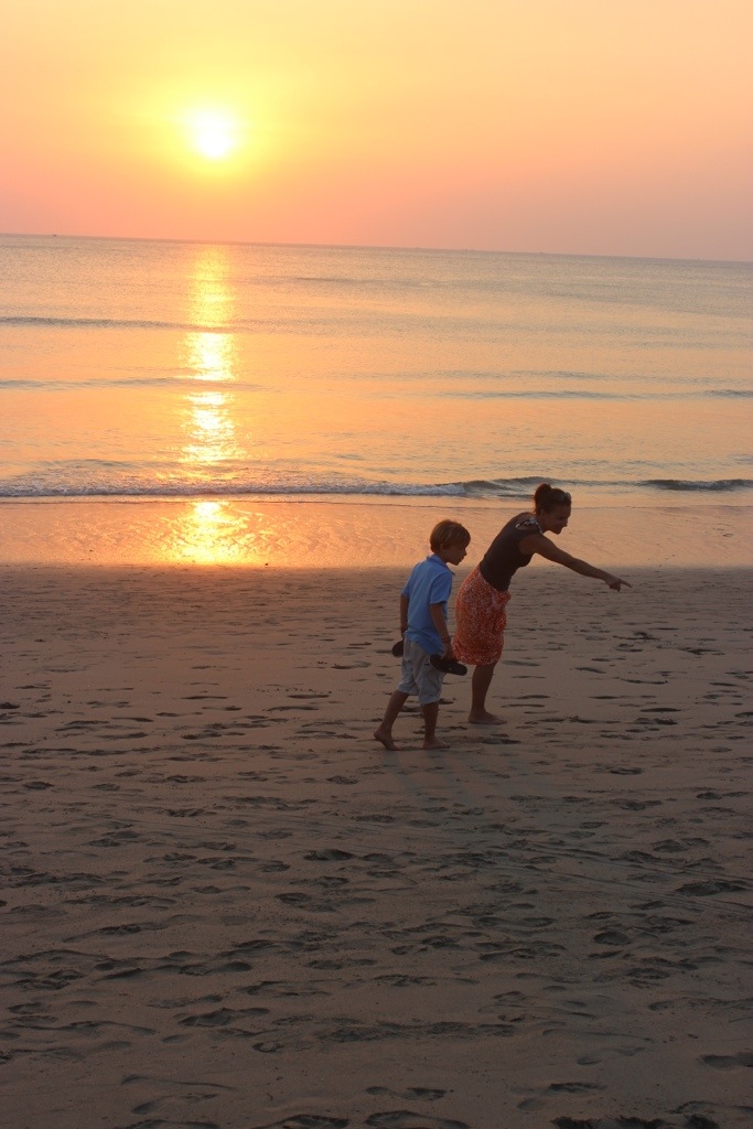 Maddux and I followed around two little crabs for awhile in koh lanta. Sometimes we’d lose them (they looked like little tumble weeds moving so fast sideways.) Maddux said it was like I Spy trying to find them. The sunset was stellar!