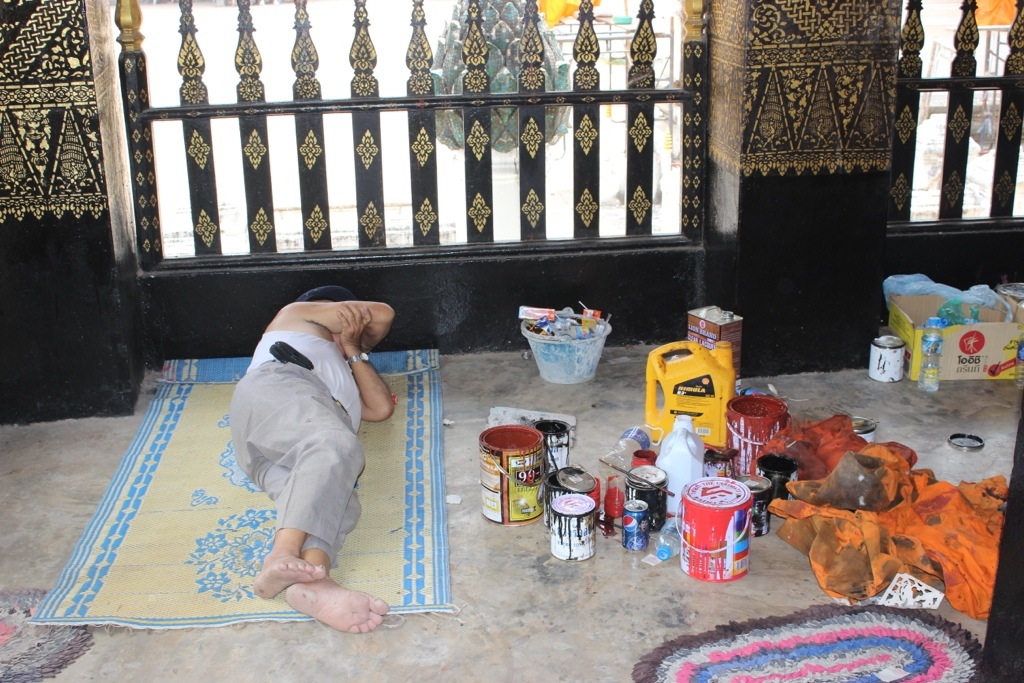 Check out the painter taking a break. No need to find a coffee shop or take a siesta at home- just plop down at the job site so there’s no time wasted in transit! Brilliant!