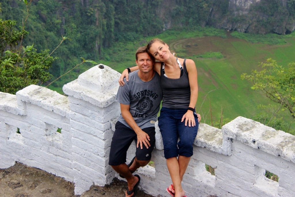 The steps were steep and there was goat poop everywhere, but it was a great climb. At the very top -after we were all hot and sweaty- a light misty rain started. It was perfect. There was a statue of a Buddha wearing a long robe up at the top. Wow.