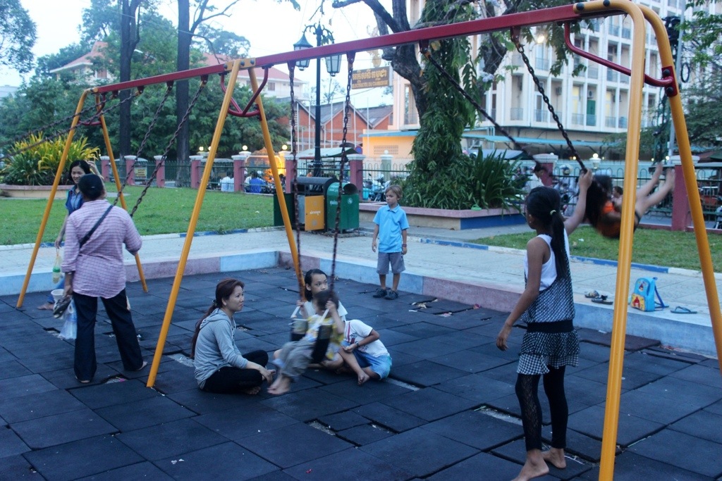~In Phnom Penh, we saw guys with rickshaws carrying huge blocks of ice, then stopping at street vendors to saw ice off or leave a chunk for the storekeeper’s coolers.