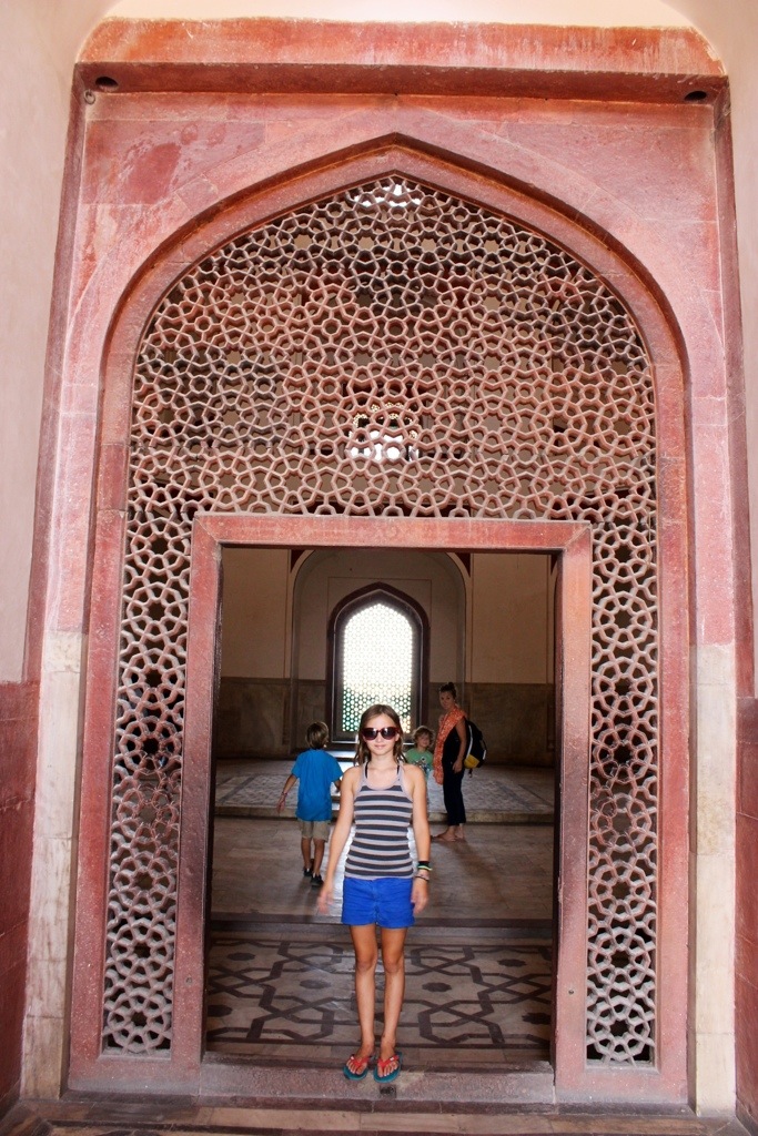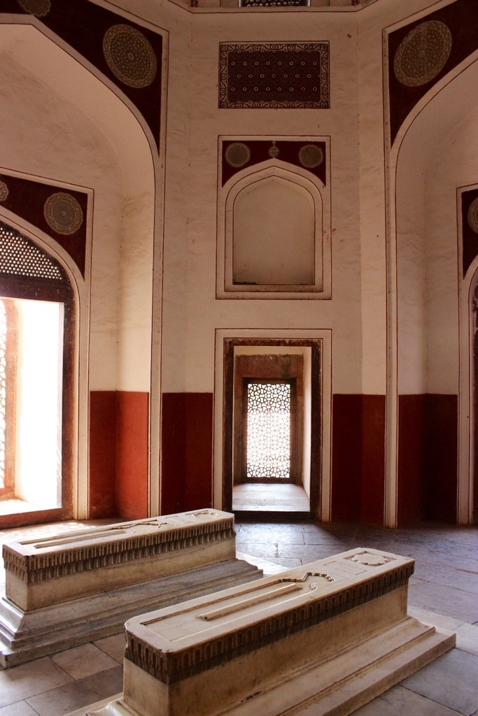 This was built in the mid-16th century and brought Persian style to Delhi via Haji Begum who was the Persian born senior wife of the second Mughal emperor Humayun. The building is actually the inspiration for the Taj Mahal. Tombs are inside and out- even the emperor’s favorite barber earned a final resting place here.
