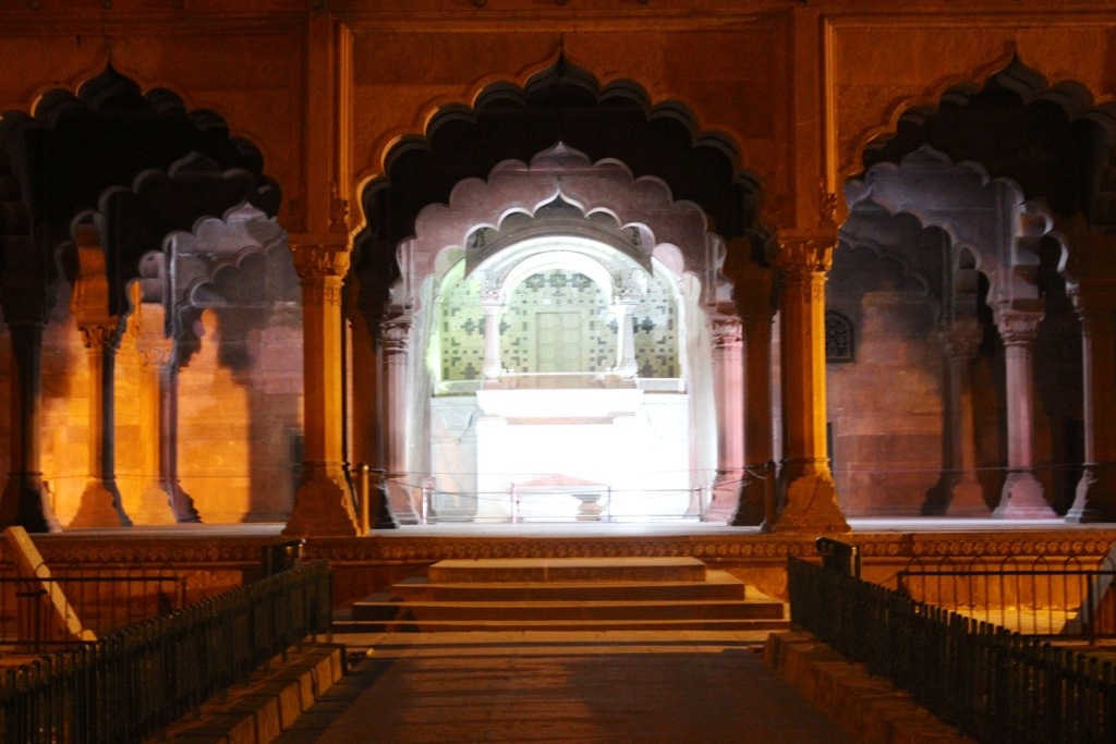 If someone was granted permission to speak to the ruler at the Red Fort in Delhi- they would walk down the extremely long pathway to the throne. They would stand on the large marble slab to speak to him.
