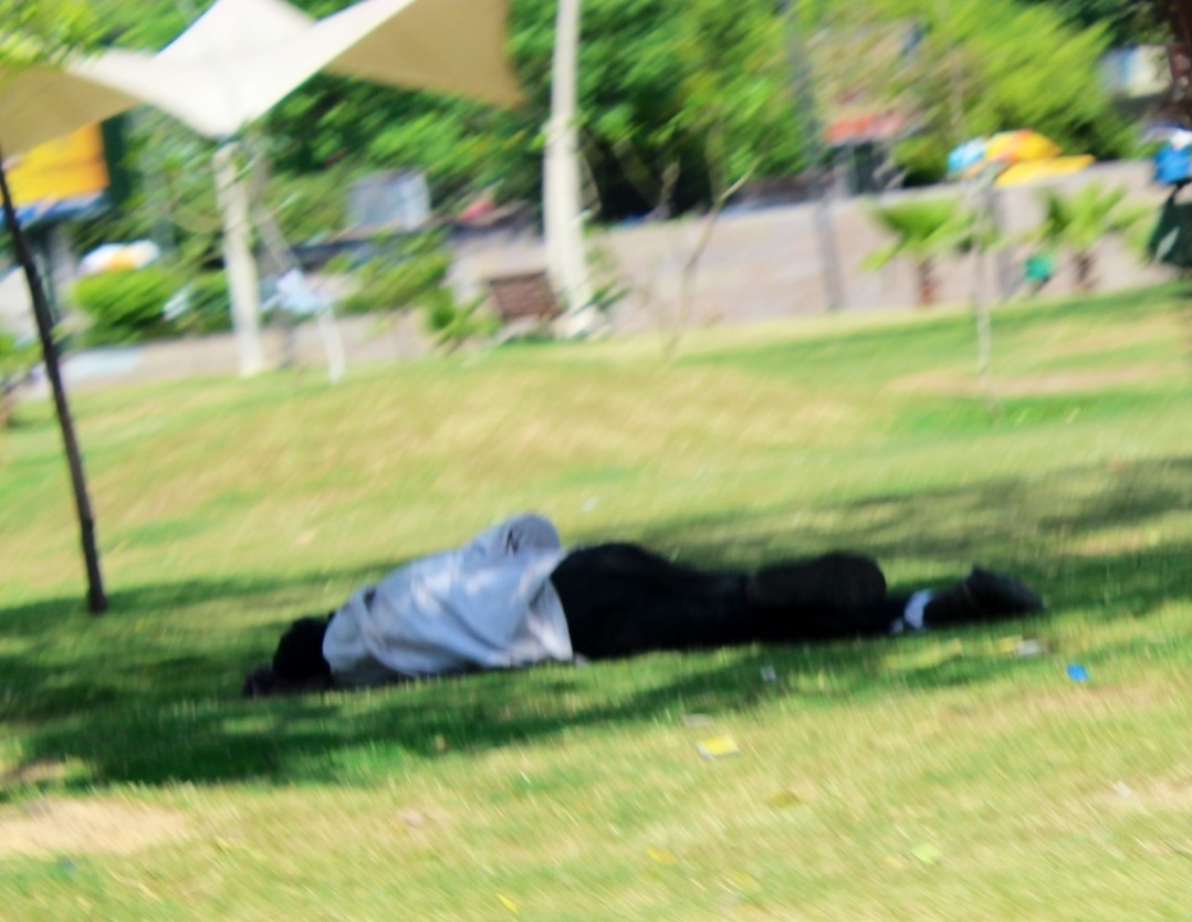 Sad- people sleep on the lawns outside of temples waiting for leftovers