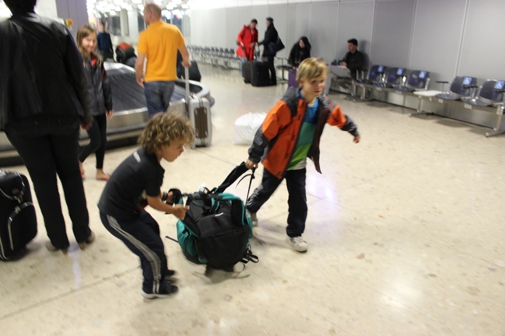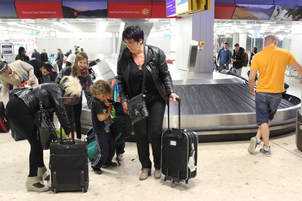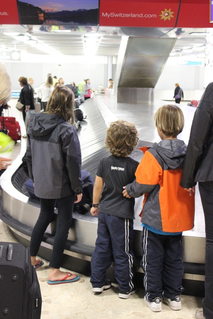 Arriving in Switzerland! It takes teamwork to get all our stuff together!