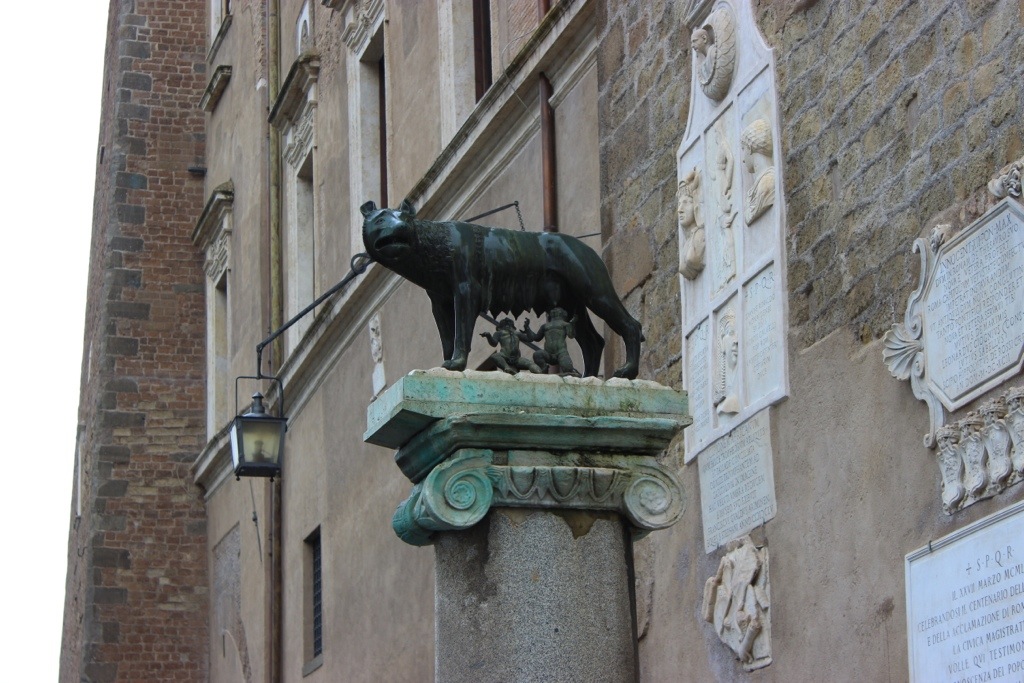 This bronze statue is the symbol of the city of Rome. The mythological Romulus and Remus were supposed to have been kept alive by a wolf in order to fulfill their destiny as founders of the city. The figures of the infants were created during the Renaissance.