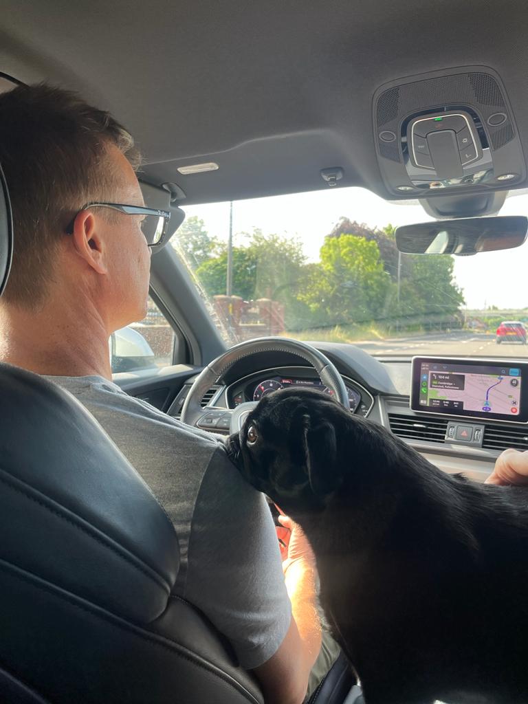 We packed up the car. Jesse bought a used roof box for the paddle boards and extra stuff we didn’t want jam packed in with us. We left Harrogate (near Leeds) and started our drive to Salzburg. It is a 1,002 mile (1614 km) journey with a short ferry ride from Dover, England to Calais, France as well. Maizy and Dottie had to stay in the car for the 1 1/2 hour ferry trip. They slept. We stopped in Heidelberg for a little break which is a good thing to do from time to time. Powering through is absolutely possible but can sometimes ends in fighting 😆.