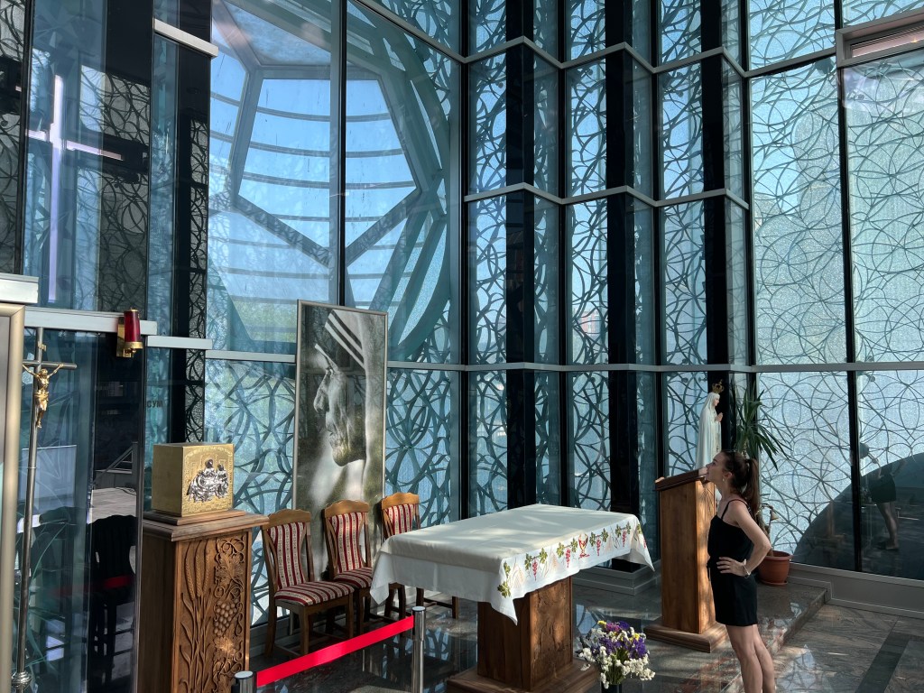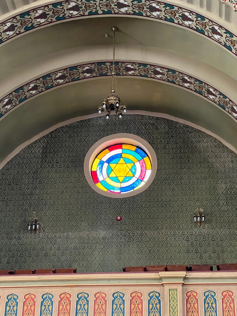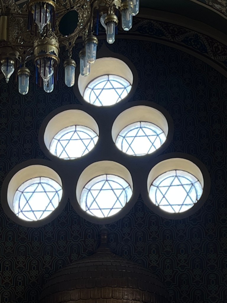 The Stars of David in the stained glass windows is really beautiful in person. Security is pretty tight at Jewish synagogues- which makes me sad. At most holy places, Emerson and I have to cover our shoulders and knees. Apparently, men’s shoulders and knees don’t offend any gods.