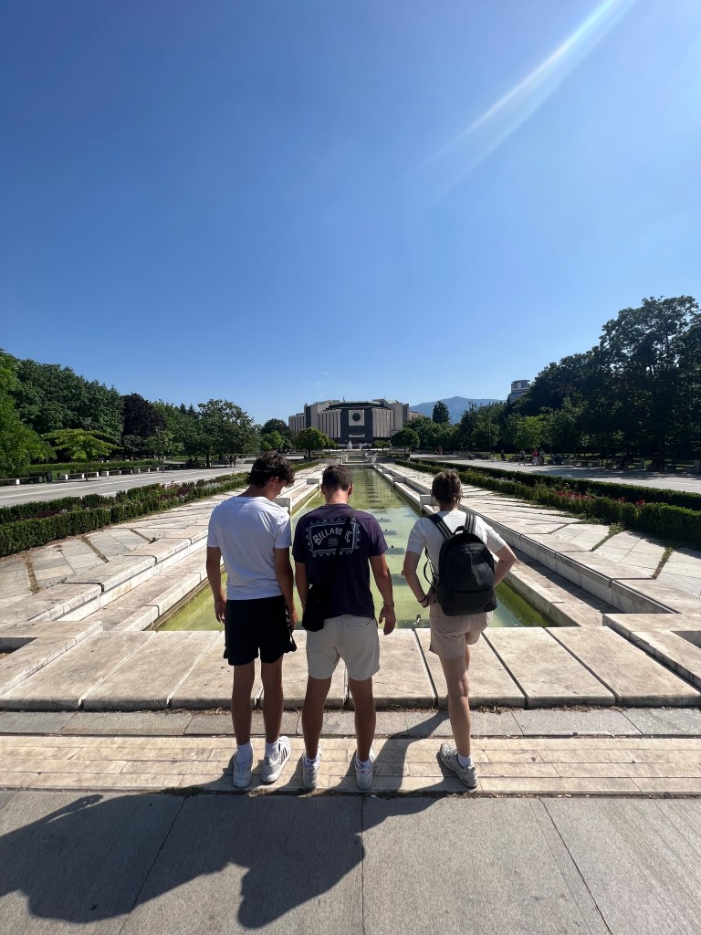 This building is impressive with a beautiful long reflecting pool in front of it. The idea was Lyudmila Zhivkova’s. She was the daughter of the communist leader of the former People’s Republic of Bulgaria- Todor Zhivkov.