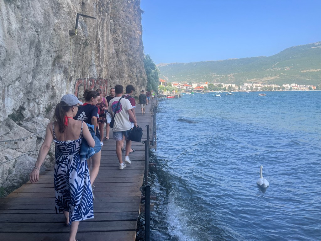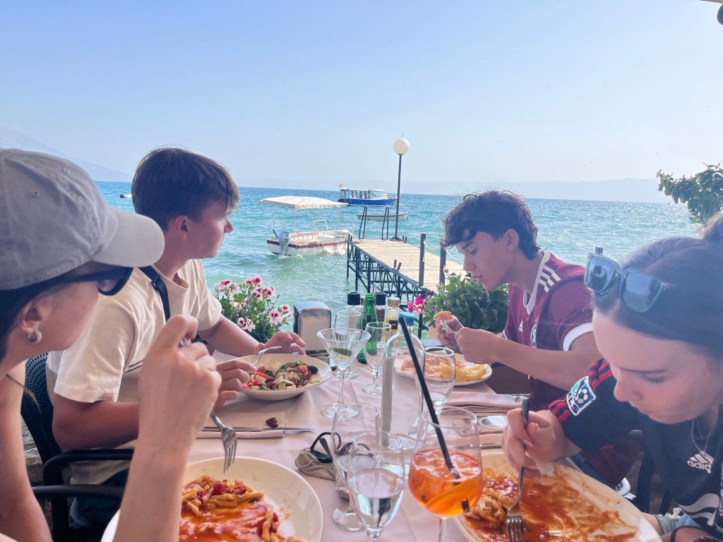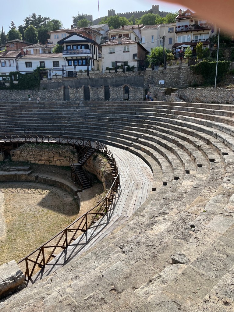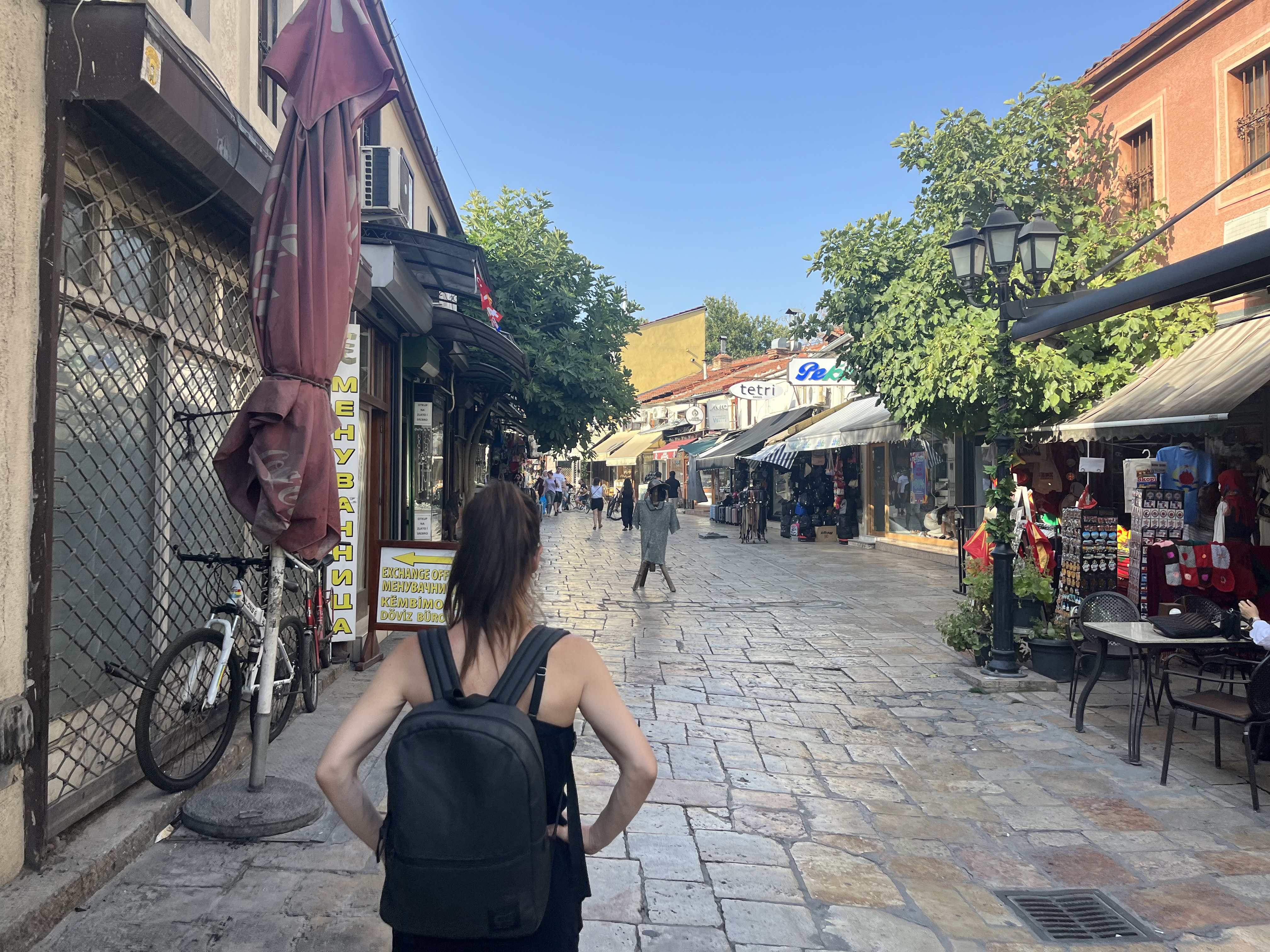 In the town square, I noticed an open window with a cool wood beam. I love stuff like that. I wonder how old the building is. I’m happy no one ever updated the ceiling or brick walls. The second photo is of a mall. The boys were watching a stray cat. The mosque was so pretty lit up at night. There are loud speakers that announce the adhan which is a call to prayer. This happens five times a day. If you listen closely, you can hear it in the second video. The first video is some women doing a traditional folk dance. We thought we saw our Macedonian friend, Janet, from Princeton! But, sadly, it wasn’t here. I miss you, lady! Wish you were here.