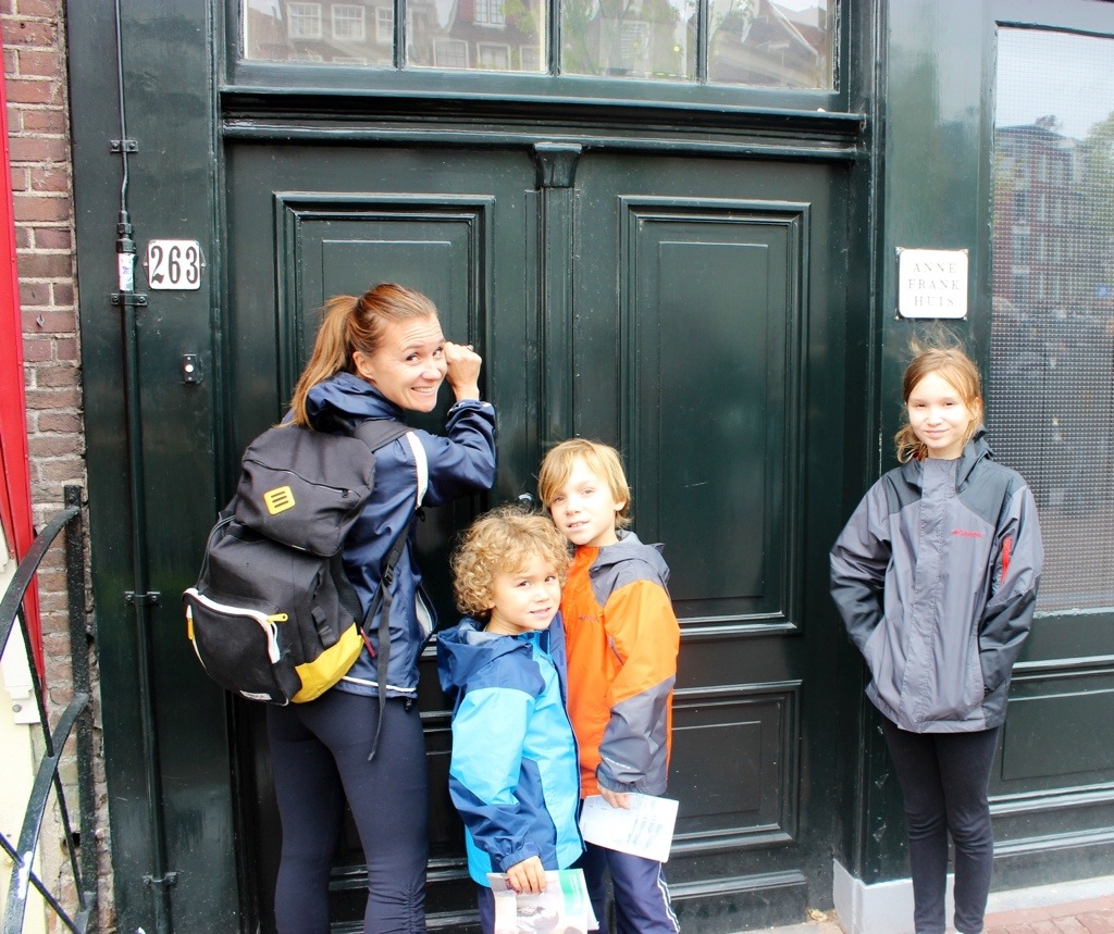 They do not allow you to take photographs inside of the secret annex where Anne Frank and seven other Jews hid from the Nazis with the help of office workers in the factory below. They had to be very quiet during the day, they could not open their black out curtains, their food rations were scarce, they were bored, scared, sad… The museum is set up where you walk up narrow stairs into different rooms. Rooms were multipurpose- meaning one room would be used as a bedroom, a kitchen and the family room. Eight people (two families and a single man) shared the space. The original bookcase that hid the annex is still there at the top of a staircase. In the last room, you get to see her actual diary, as well as photos of the inhabitants and short stories of their fates after they were removed from the hiding place and sent off to concentration camps. Otto Frank, Anne’s dad, was the only one to survive. Miep Gies, an office worker who helped hide them, found Anne’s writings and put them in a safe place in case she returned. Sadly, she did not. The papers and diaries were given to her father who felt her story needed to be told.