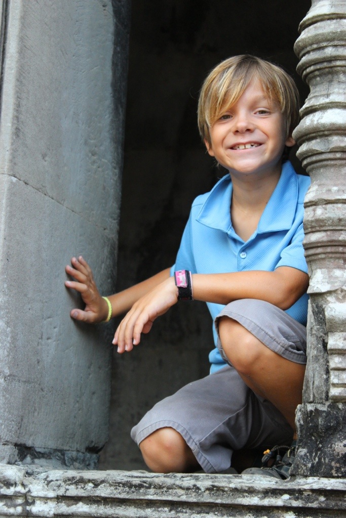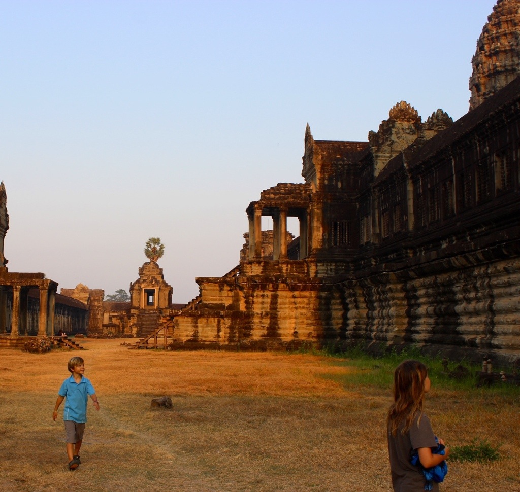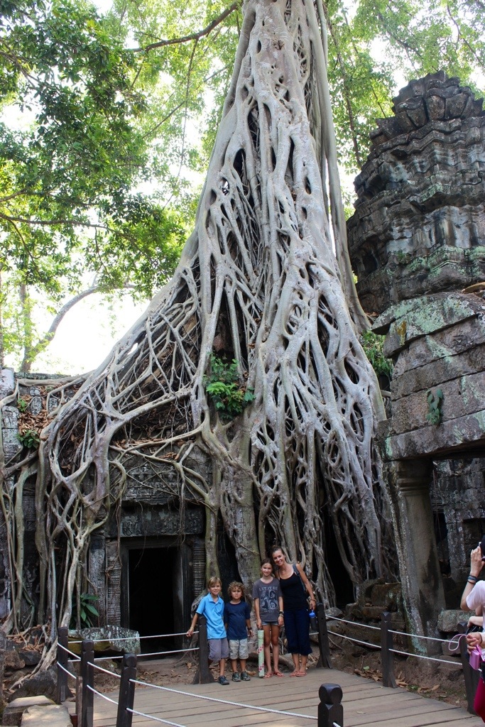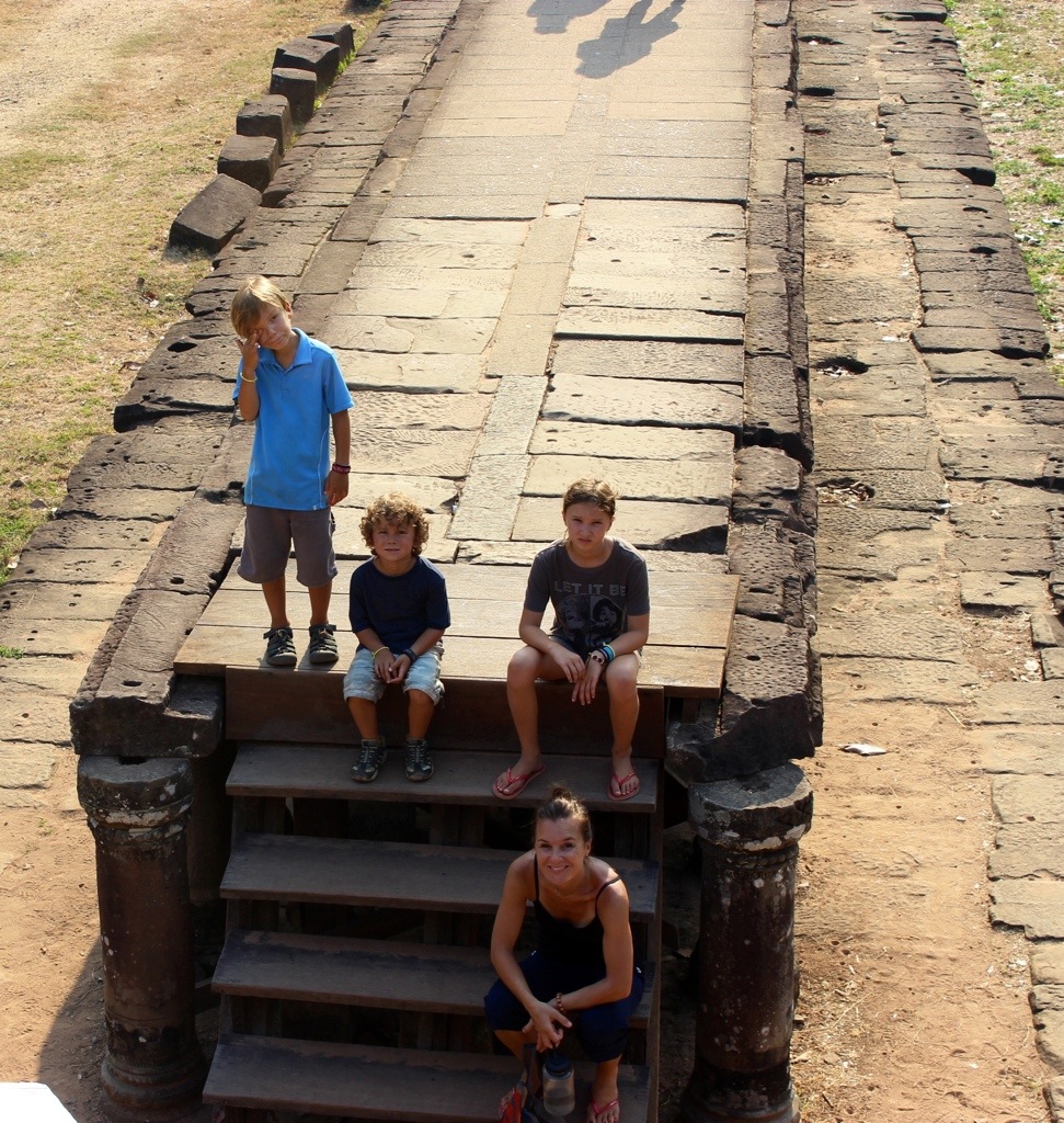 The kids started making fun of Dad because he kept saying, “Just one more temple! Come on! This is Angkor Wat.” All the temples were looking the same to them. There was almost a mutiny in the tuk tuk, but when all the sight seeing was over, everyone was happy that we did this. In our defense, we were working on very little sleep and it was over 100 degrees one day. The only coffee I had all day was some acidy, brownish colored water in a flimsy plastic cup around 5:30am. So- I say we rocked it!