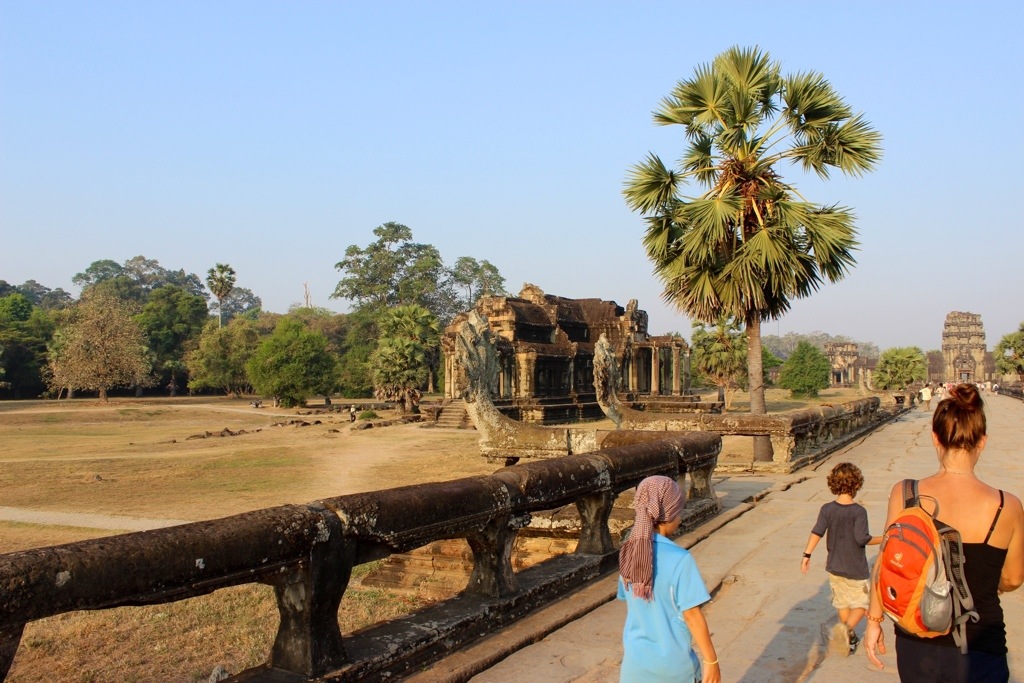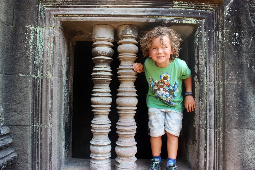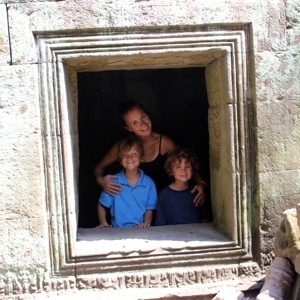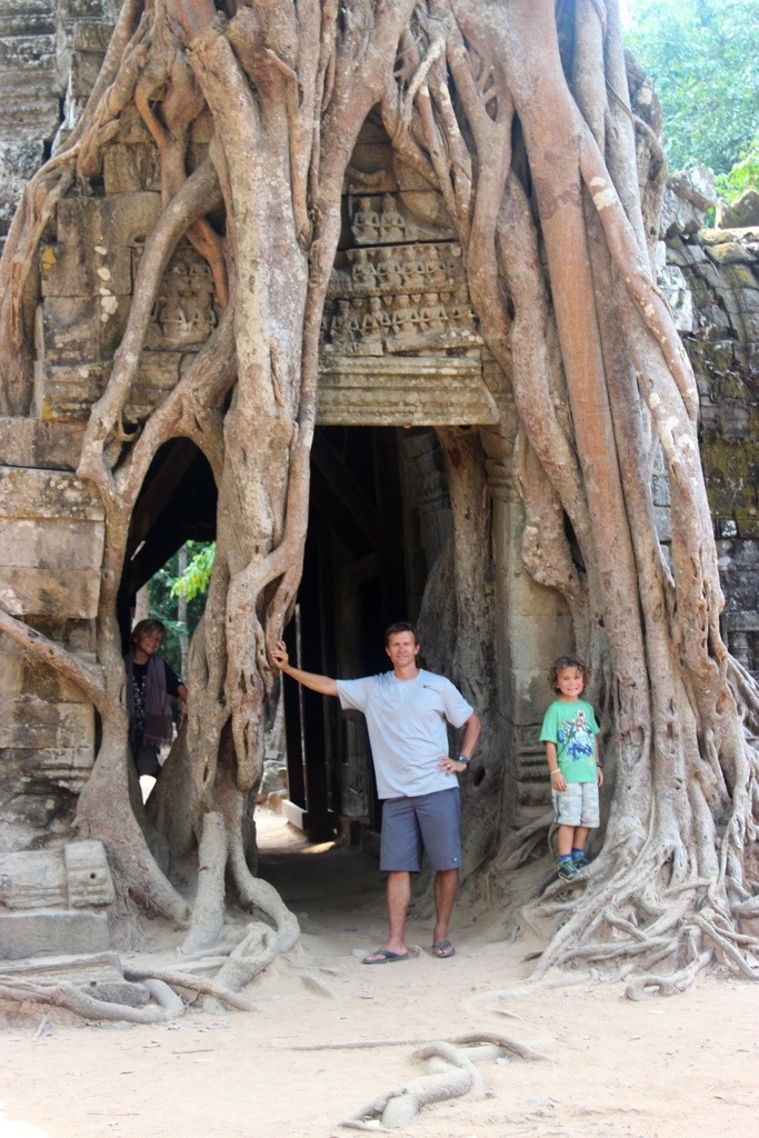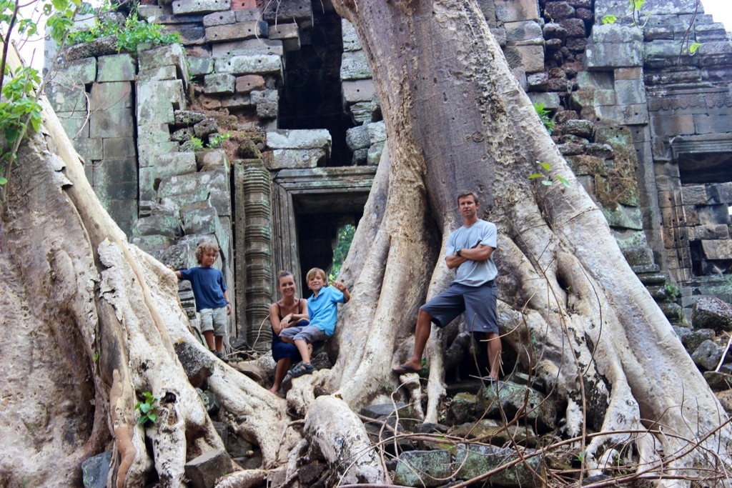 The kids started making fun of Dad because he kept saying, “Just one more temple! Come on! This is Angkor Wat.” All the temples were looking the same to them. There was almost a mutiny in the tuk tuk, but when all the sight seeing was over, everyone was happy that we did this. In our defense, we were working on very little sleep and it was over 100 degrees one day. The only coffee I had all day was some acidy, brownish colored water in a flimsy plastic cup around 5:30am. So- I say we rocked it!