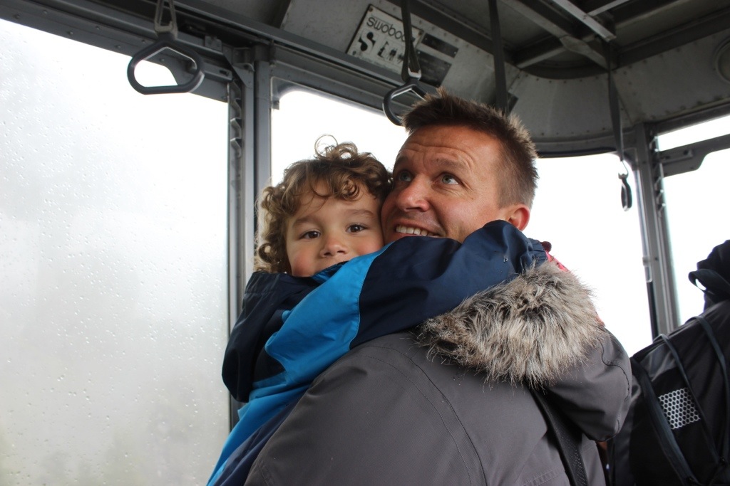 Lennon wanted to go on the bench with Dad, but we had him take a photo on a tiny ledge that made him appear to be doing some dangerous climbing.