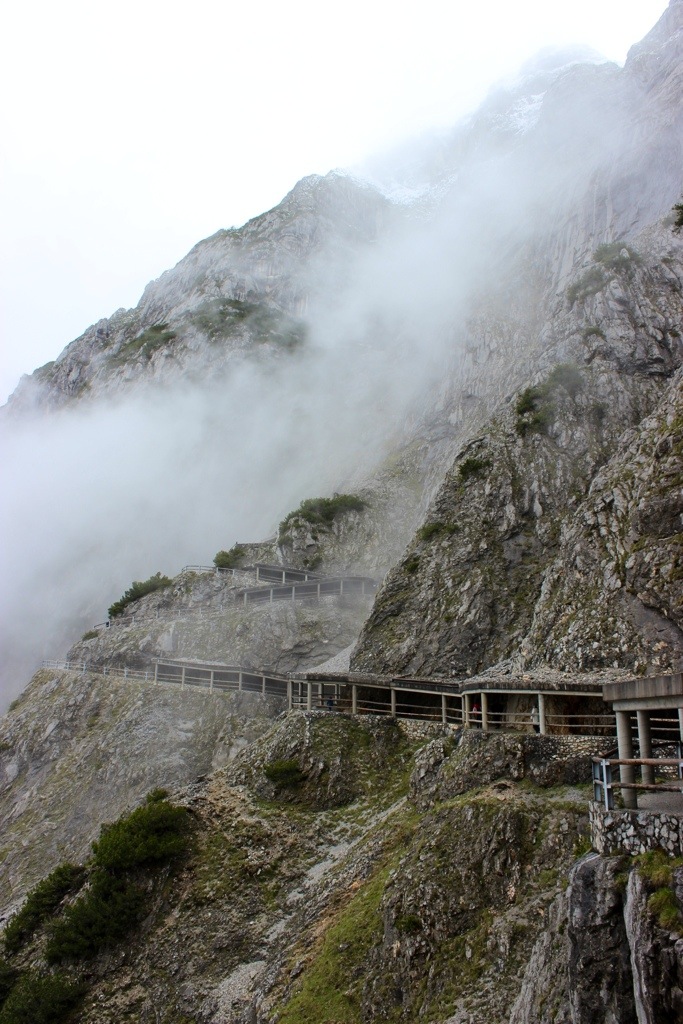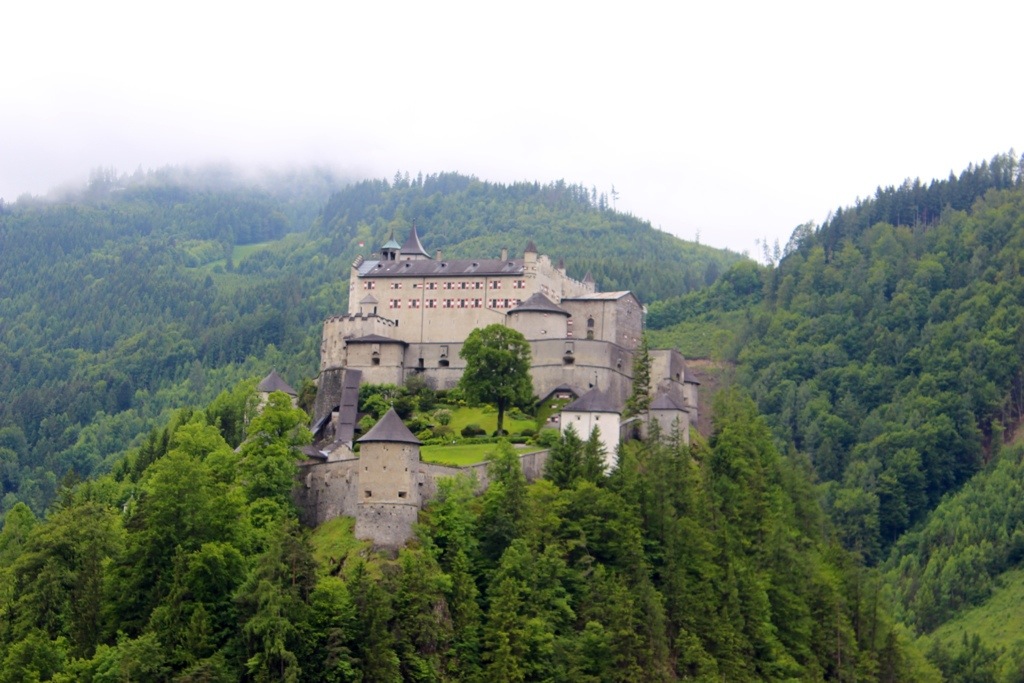 Hohenwerfen Castle is also known as Erlebnisburg (literally: “Castle of Experience.”) It is an amazing castle near the ice caves. It is located high above the Austrian town of Werfen in the Salzach valley. We had to drive about 30 minutes from Salzburg to get there. The castle is surrounded by the Berchtesgaden Alps and the Tennengebirge mountain range. The fortification is a “sister” of Hohensalzburg Castle both dating from the 11th century.