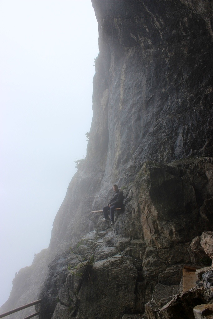 Just chillin’ on a sheer cliff – interesting place for a bench