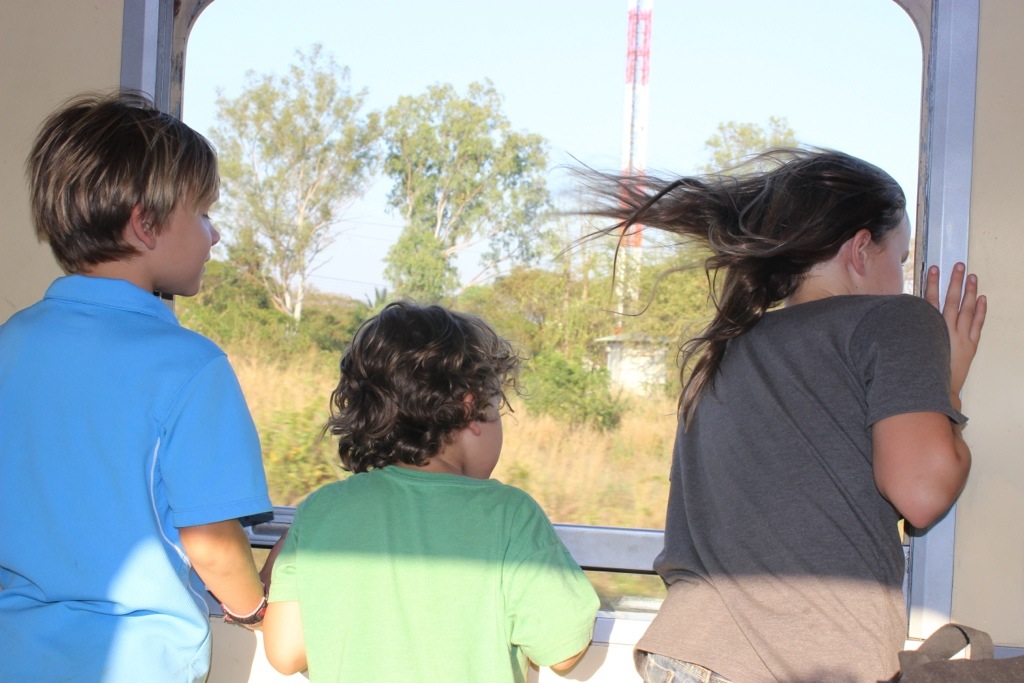 We had to get to Bangkok to catch a flight to Myanmar. We took a quick train ride then a 13 hour overnight train. Piece of cake! We’re like old pros on the train. There was a guy with a baby who wouldn’t leave us alone, though. I think he felt that if we touched his baby- it was good luck or something. Every time we walked passed him or made eye contact- he would wave us over. The kids were really good about it, but we were all tired and I think the baby was over it, too! hee