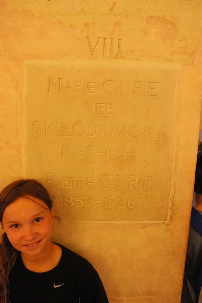 Em has always loved science and talks about wanting to possibly be a marine biologist some day (she loves animals and the ocean.) She read all about Madam Curie and the contributions she made to science. Incidentally, Marie Curie is the first and only woman (so far) to be honored with interment in the Pantheon based on her own merits. She was also the first woman to win the Nobel Peace Prize. ‘You go girl!’