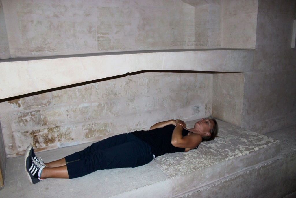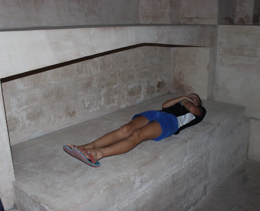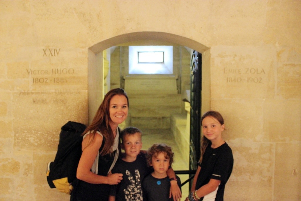 Posing in front of the Curies crypt in the Pantheon and Lennon listening to an audio guide