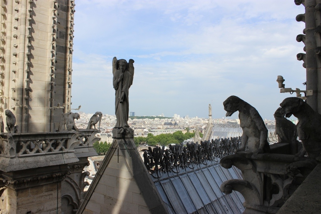 Gargoyles were built into the ends of gutters to drain rainwater off the roof. The gargoyles extend far off the side of the roof to prevent any water damage from occurring to the walls. I thought they were there for hundreds of years, but something I read said they were built in the 19th century. (Not too sure about the accuracy of that.) I also heard there are around 5,000 gargoyles placed throughout the entire building! Now that’s alotta’ gargoyles!