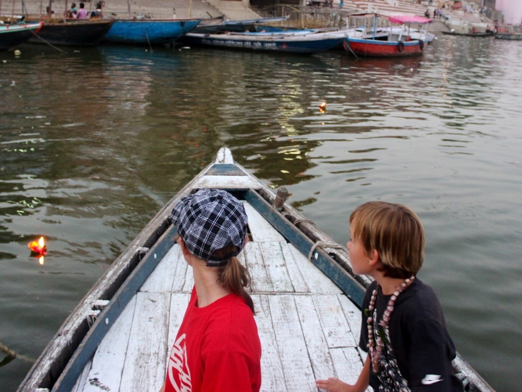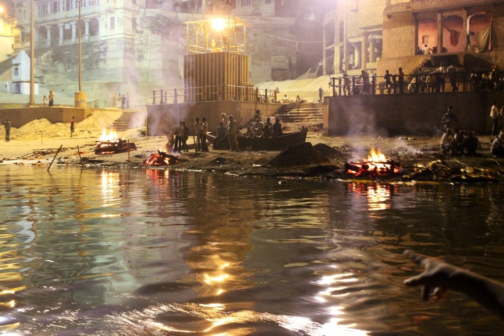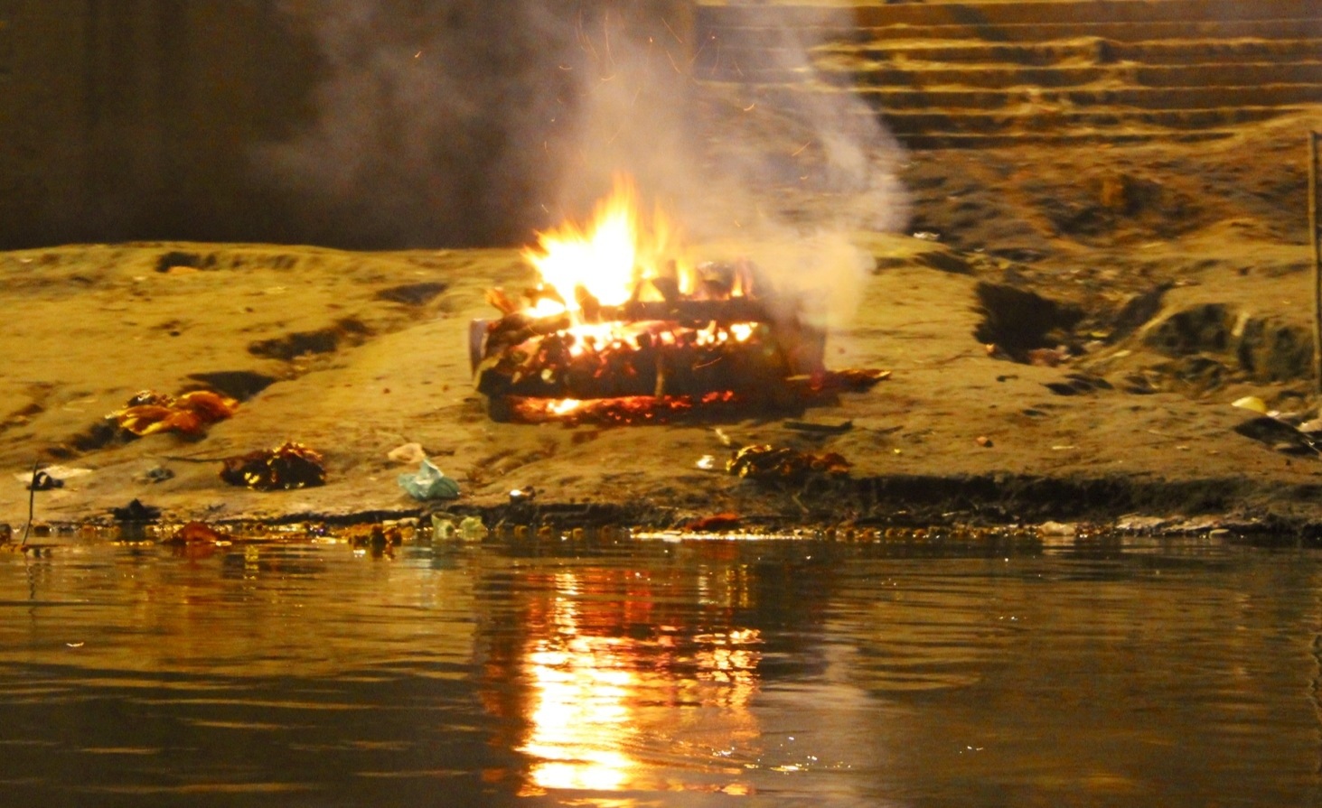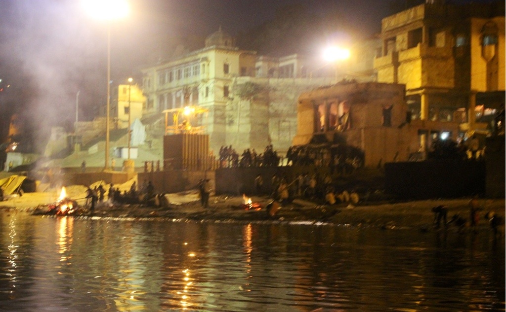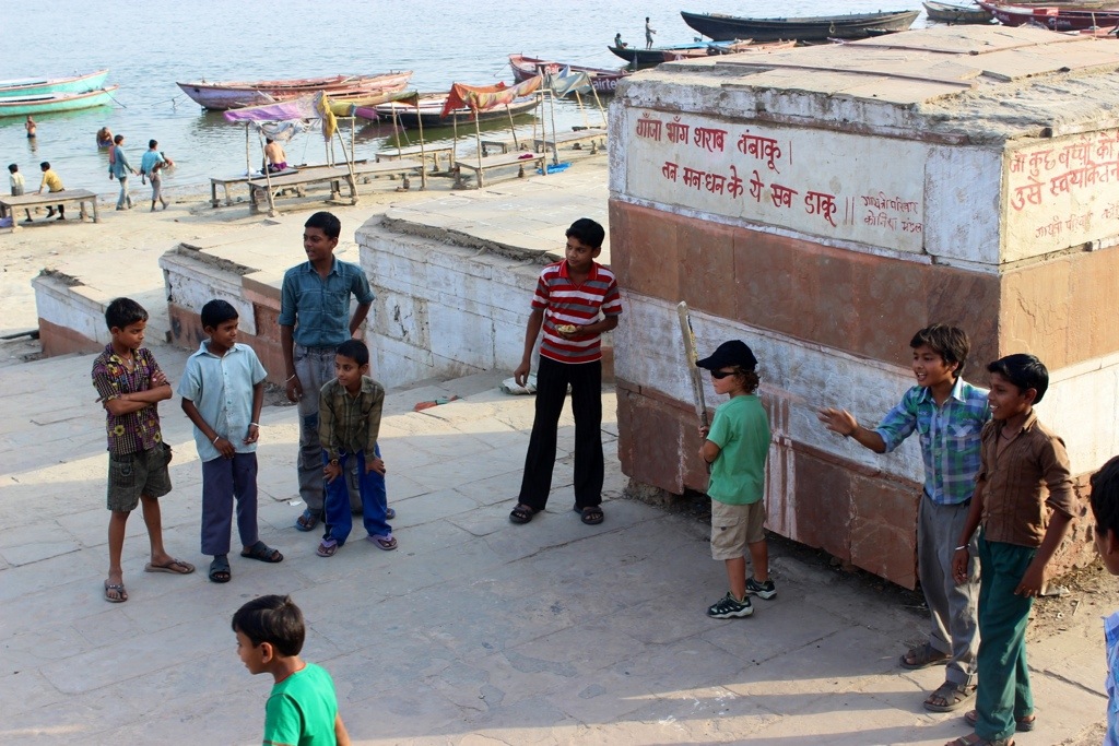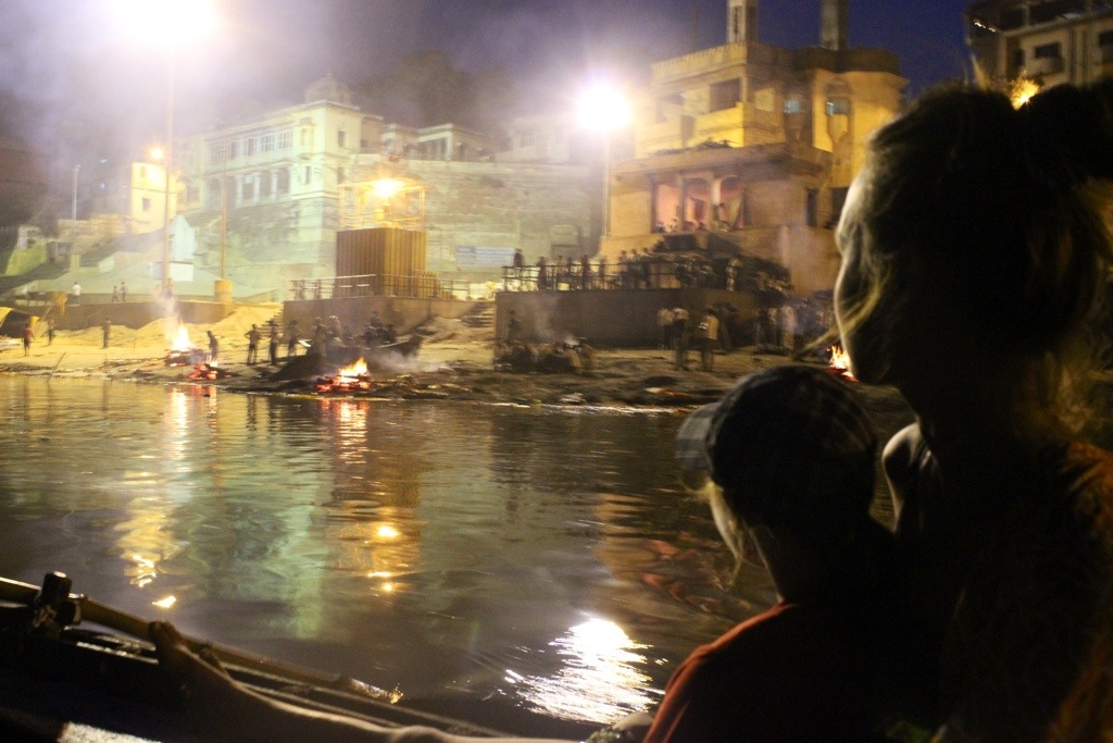 The Vishwanath or Golden Temple, is dedicated to Shiva and it is the most famous temple in Varanasi. It is located off an alley in Old Town, the entrance is an odd looking, old metal detector screenerDuring the busy season, this temple is usually off limits to foreigners, but we gave it a shot and got in. By coincidence I had thrown our passports in my bag because the hotel was a bit shady. We were frisked twice after we entered then the security guards took us to a place where we had to show our passports and they recorded our information into an old, large book. We followed a crowd of Hindus past an engraving that read “No Hindus allowed beyond this point.” We had lotus flowers to put into a pit that had a statue in it and water from the Ganges. Other people brought milk, money and fruit as offerings to the gods. We walked out into a mob of people and monkeys to another temple that had a big ball in it that was also filled with Ganges water. Flowers were flying, monkeys were climbing and the smell of sour milk hung heavy in the air.