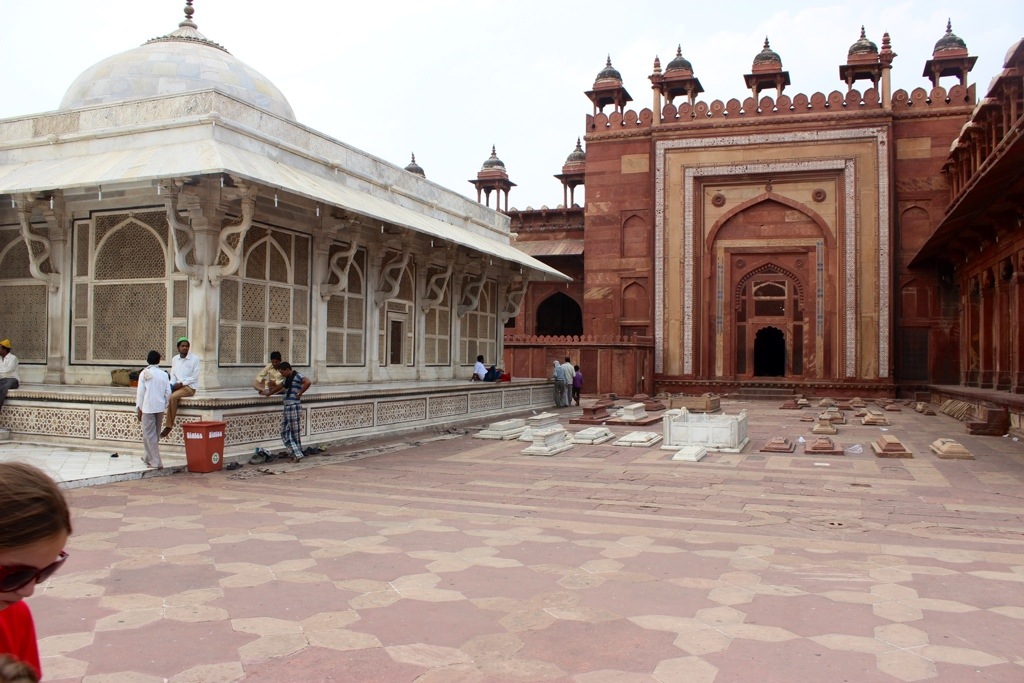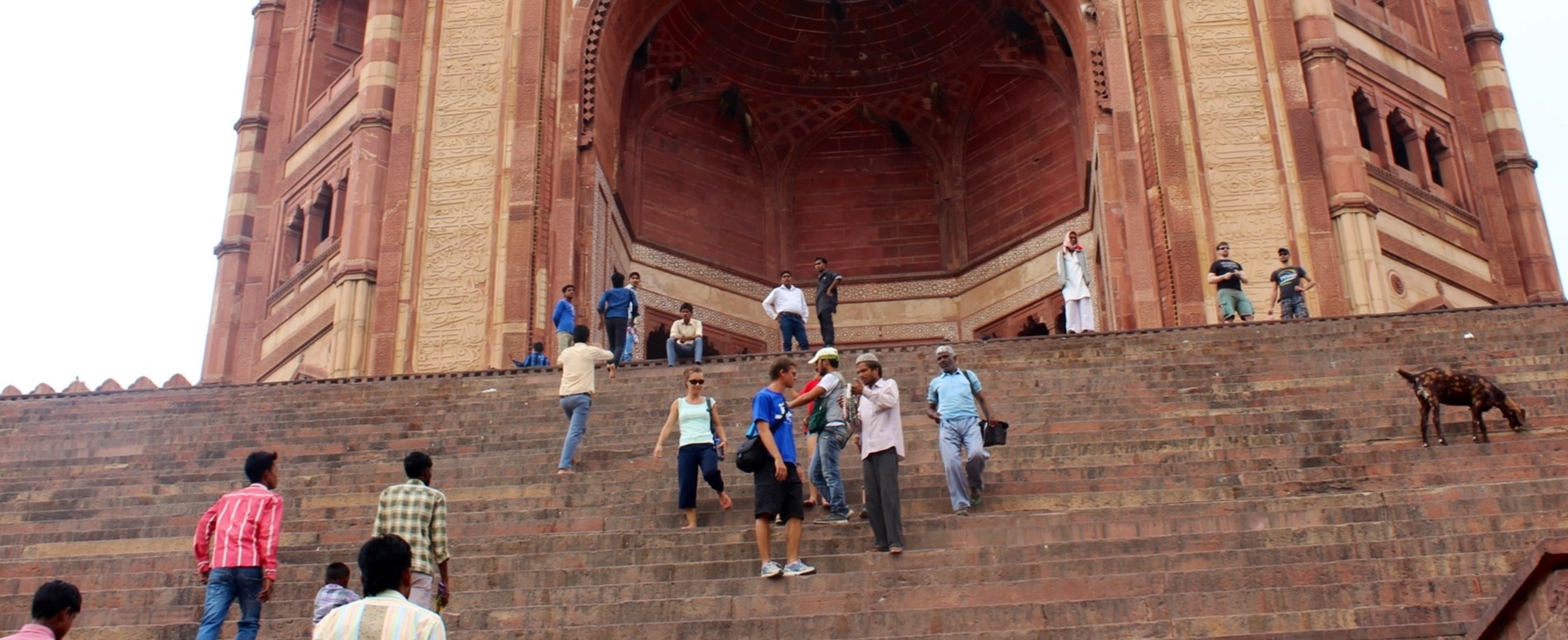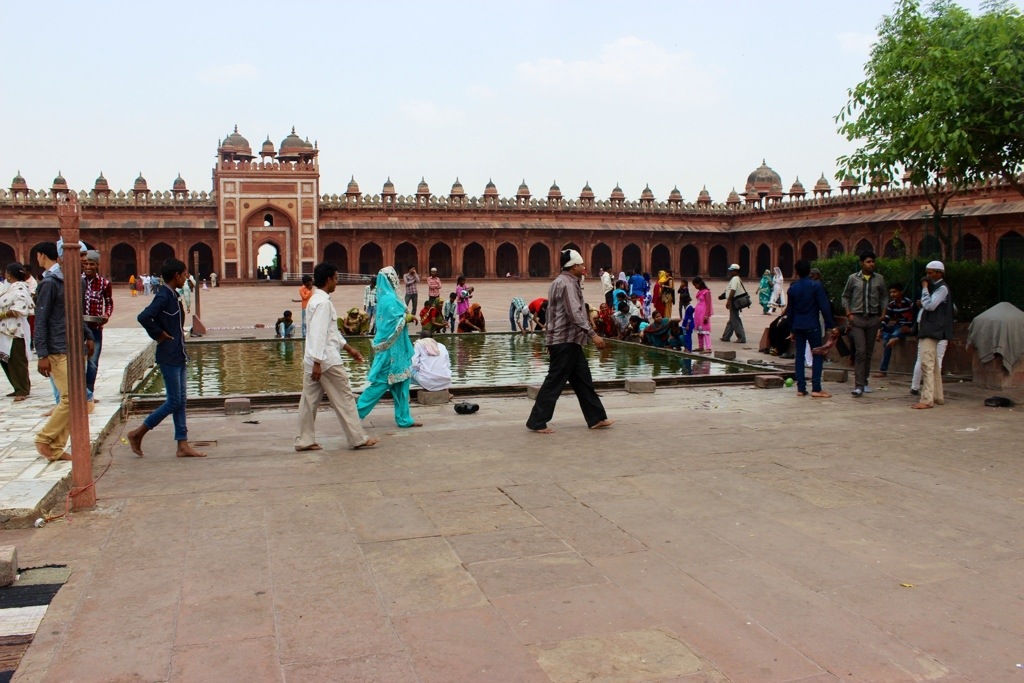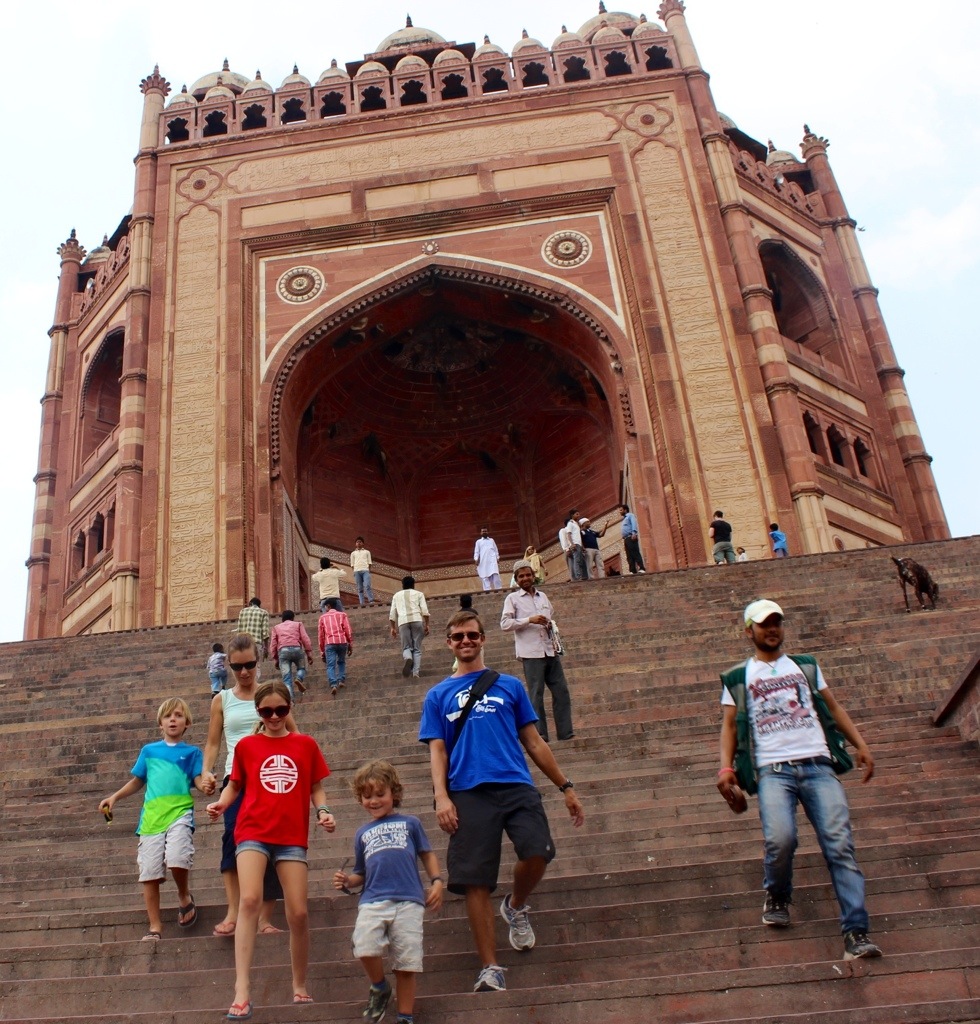 The gate is located in Fatehpur Sikri. I am not sure if it is the oldest, but is one of the biggest we have ever seen. When we walked down, people glommed onto us and wouldn’t leave us alone trying to sell us all sorts of stuff. They all have the same story- they say they made it themselves, it is their family business, someone in their family is sick or dying….. A woman I met at a temple said sometimes you just want to stay in your hotel room all day because you haven’t got anymore fight left in you to say, “No, thanks.” “No!” “Please leave my family alone.” “Go away!” But we persevered and fought through each day and saw so much in India.