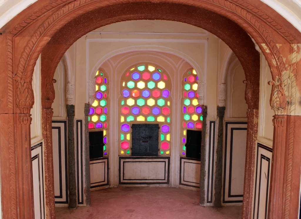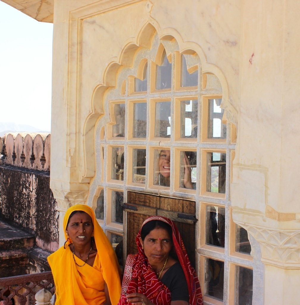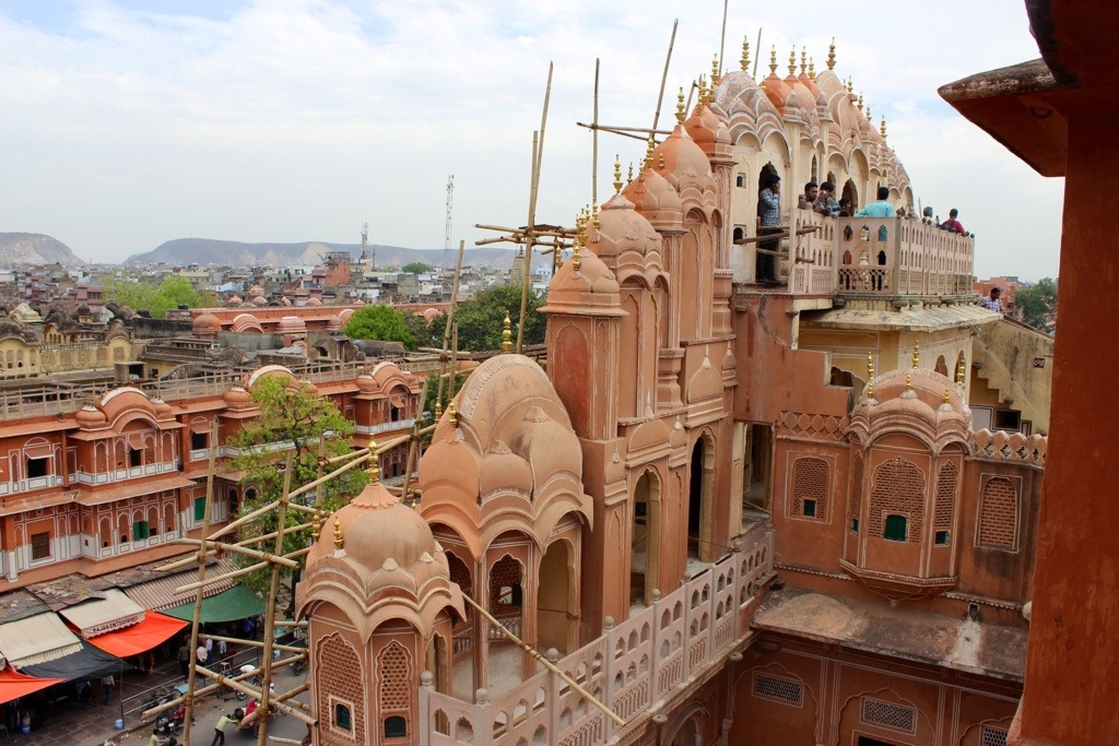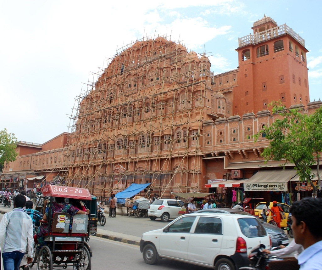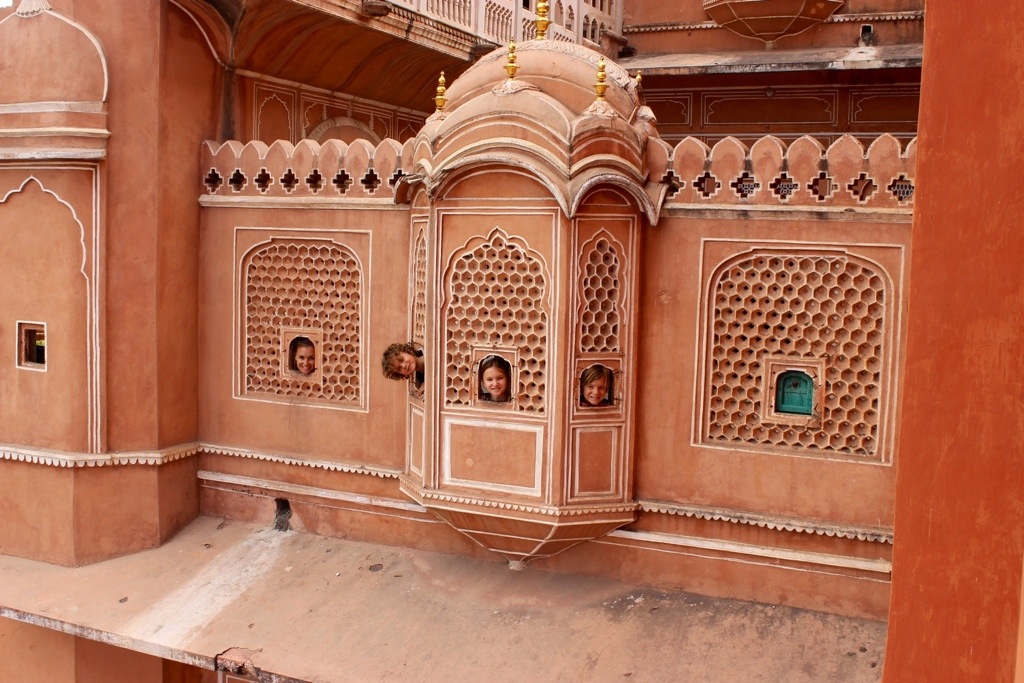 The Hawa Mahal is all facade- an elaborate palace exterior with nine hundred and fifty three windows and nooks and crannies everywhere. Behind this facade are no buildings – it is a maze of corridors and resting points. The royal women of the zenana used to peek out and see the city, or watched processions passing down below. The design also trapped the breeze, that is how it got the name “Palace of Breezes”.