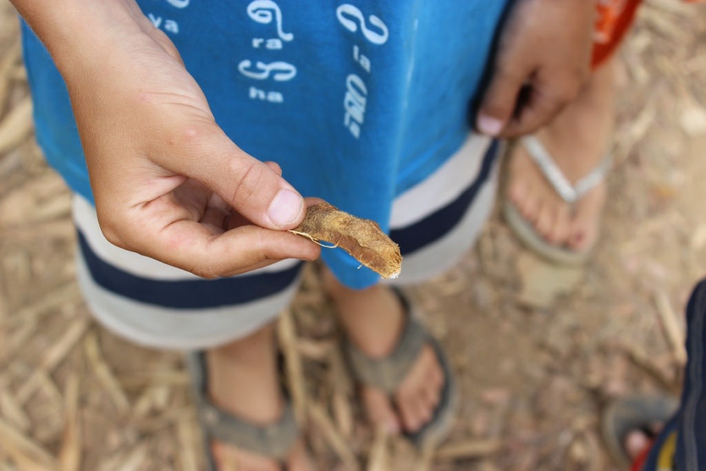 Tamarind is a pod like fruit. If you look closely in the tree picture you can see a guy who climbed up high to shake all the tamarind to the ground. A woman with a basket collected all the pods after they rained down.They use it to make green curry, candy – all different kinds of things. Maddux was brave and tried it. He liked it!