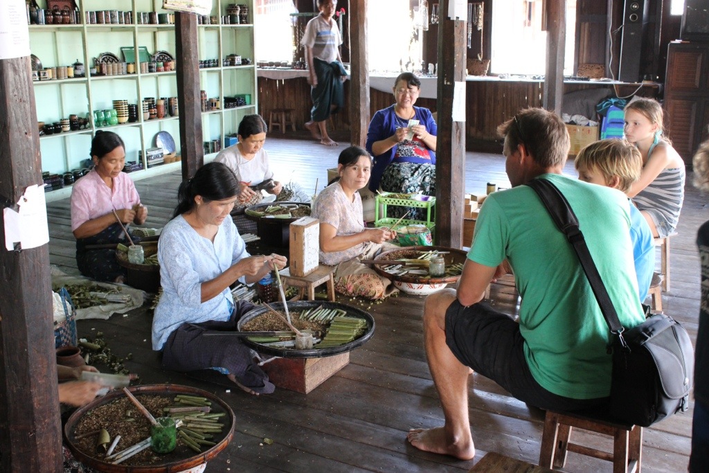 We visited this place on our boat tour around the lake. It was mesmerizing! A bunch of different looms with 2-6 foot pedals on each machine. Each worker had their own pattern to make (they made the pattern by moving their feet on different pedals) and the foot pedals changed the threads. The people moved around the shuttles. The sounds were rhythmic, the colors extraordinary. The people sat on skinny hard wooden benches and worked tirelessly. They made longhis (which look like long skirts for men- but are not feminine at all.) They also made saris for women- and purses, shirts, etc.