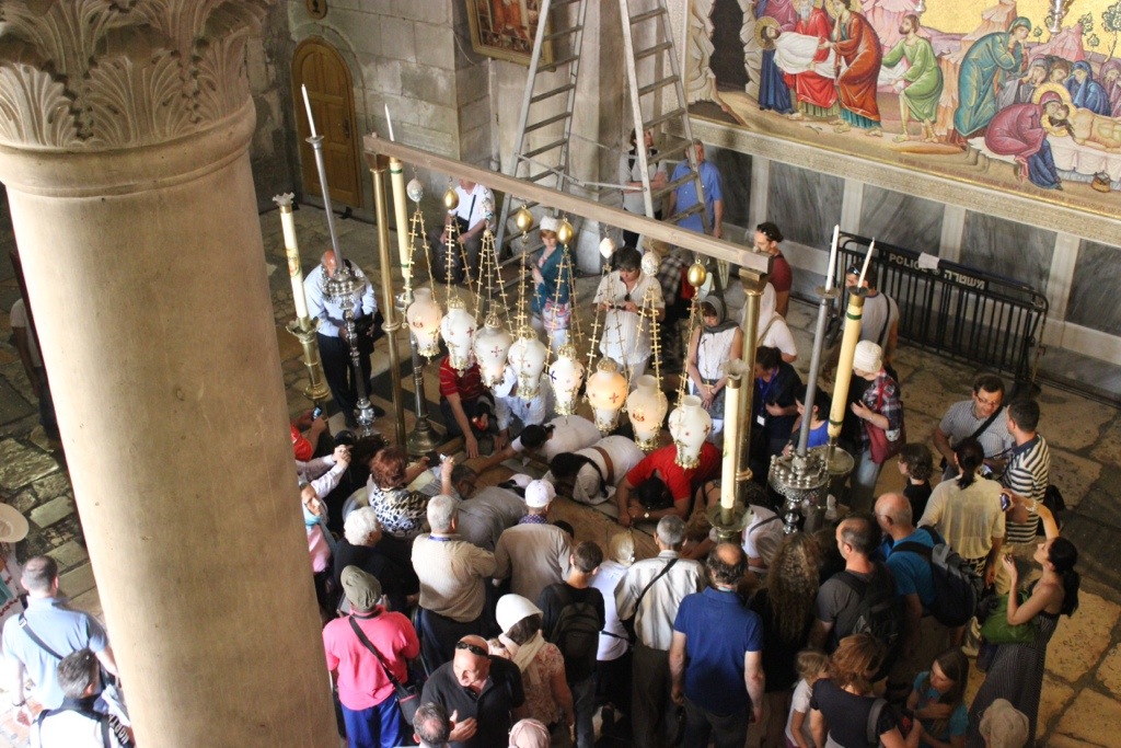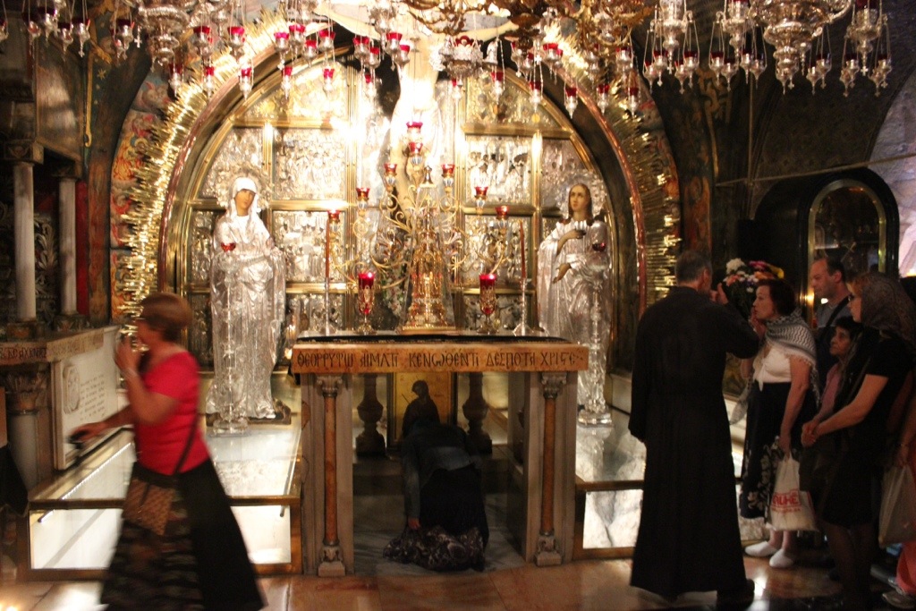 The site of the Church of the Holy Sepulchre in Jerusalem is identified as the place both of the crucifixion and the tomb of Jesus of Nazareth. The church is a place where many people who are on pilgrimages come to see where some of the major events in Christianity took place. You can see from the photos, that people were everywhere!!!