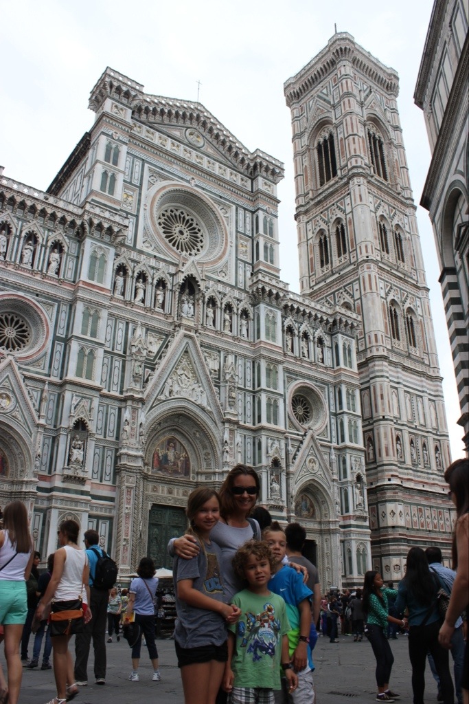 Emerson, Nana (Jesse’s mom Sally) and I traveled to visit Allie (my friend in Austria with Baby Walter) when she was studying Renaissance Art in Florence in 2002 when Emerson was about 7 or 8 months old. Allie has her doctorate now which means she knows a hell of a lot about this stuff. When we visited her eleven years ago, we went to many museums, churches and galleries where we had her as our own personal tour guide. I am so sad to say that I couldn’t remember much when Jesse asked me questions about different things we were seeing this time around. Em didn’t remember a thing, so she couldn’t help me out! hee. I did remember the incredible energy of the city, the large amounts of pasta and bread we ate, the yummy vino, the freaky torture museum, the snakes that attacked Sally, the mosquitoes that attacked me and all the laughing we all did!