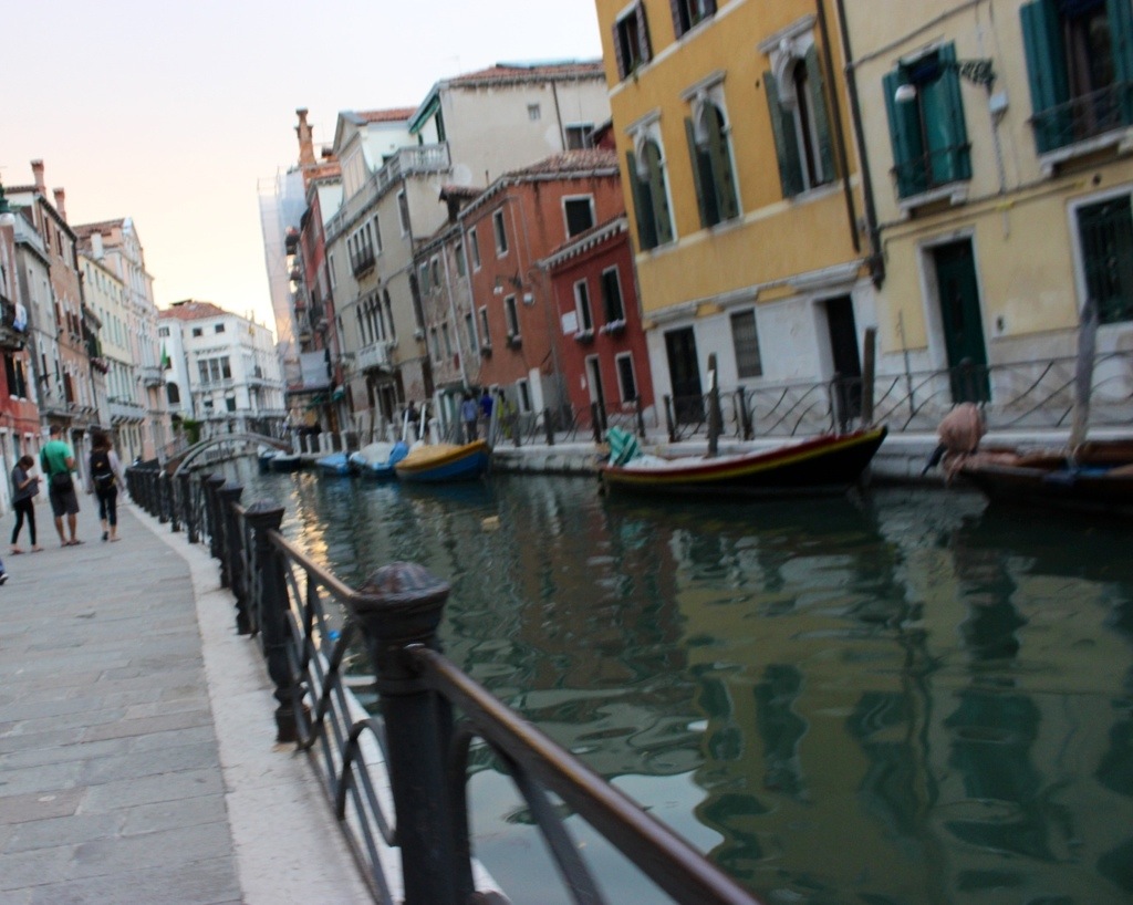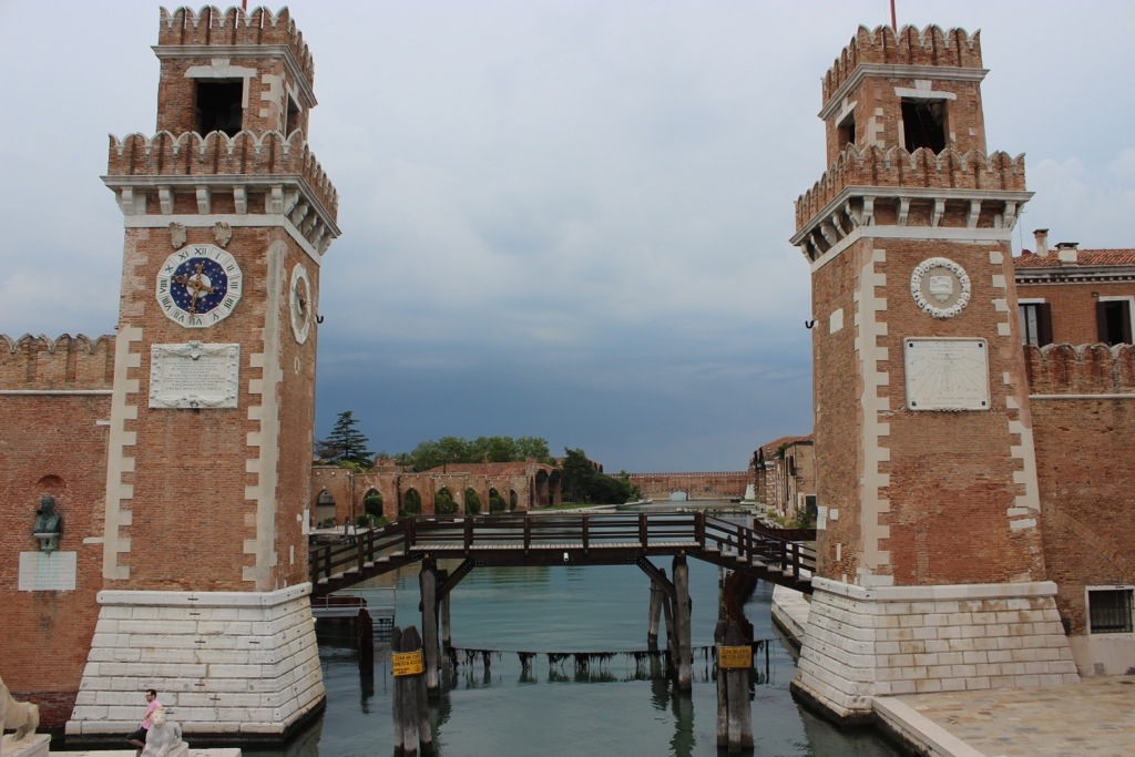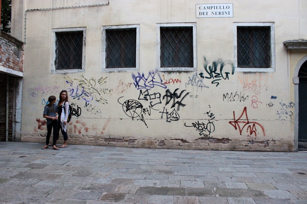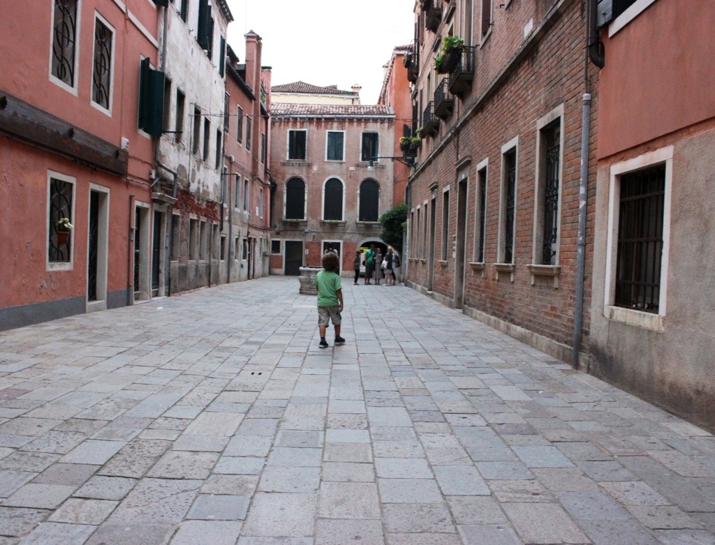 The bridge behind the kids is the Bridge of Sighs. It is an enclosed bridge made of white limestone that passes over the Rio di Palazzo and connects the New Prison to the interrogation rooms in Doge’s Palace. It was built in 1602.