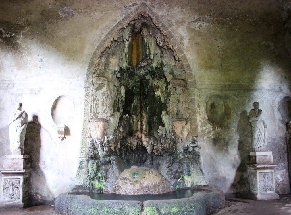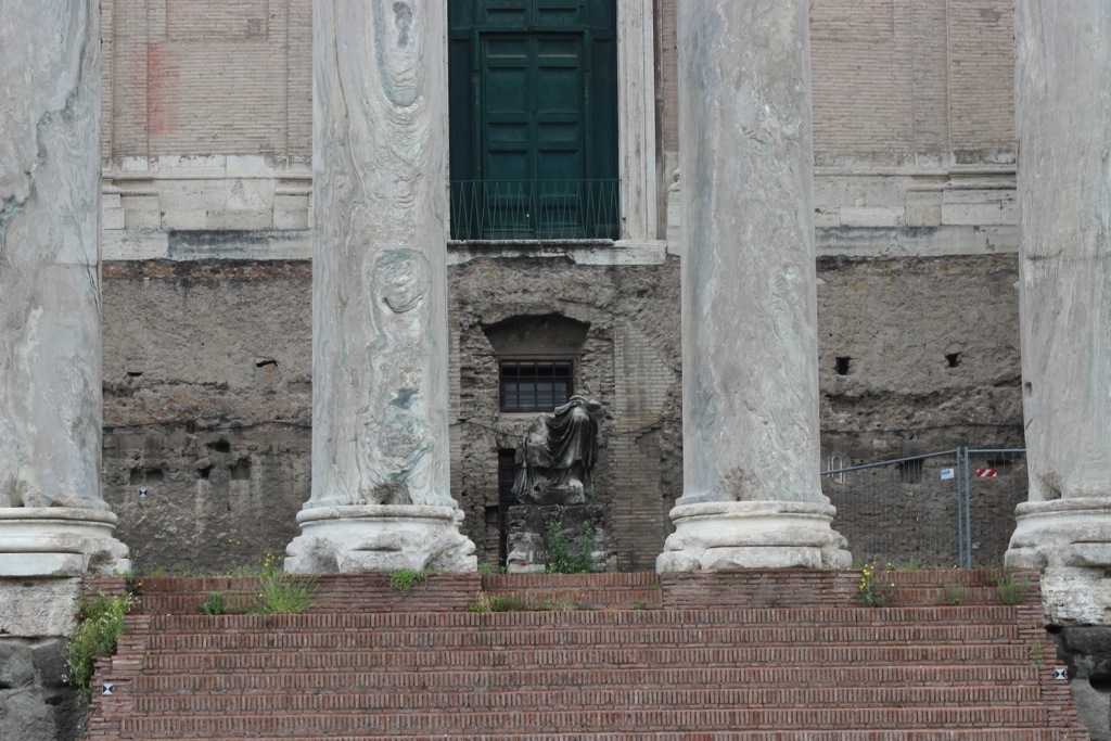 Most of the Renaissance monuments of the Palatine Hill have been destroyed over the centuries or removed during archaeological excavations of the area but one has been well preserved- it is called the Rain Nymphaeum. I thought it was fantastic! It is located at the center of the monumental ramp leading up to the Palatine from the Forum. The Nymphaeum is a vaulted structure decorated with wall paintings and a grotto-style fountain – it is behind bars so you can’t get very close to it. Bummer. The ancient stone, mixed with the bright spurts of greenery and cascading water is quite a sight.