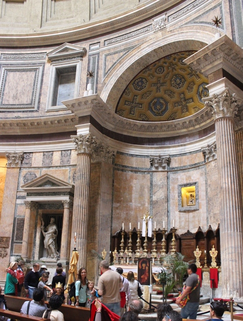 The Pantheon is the only structure of its age, size and span that has successfully survived time and gravity. Most of the marble columns are the original, as is the huge bronze door. At the top of the dome is a hole called an oculus which is the only source of light. Some believe the Pantheon is still standing because it is divinely protected.