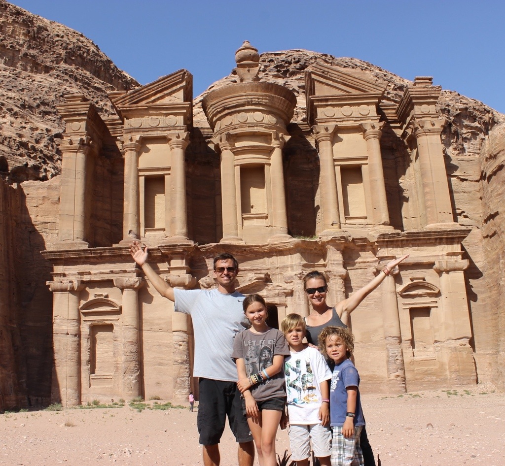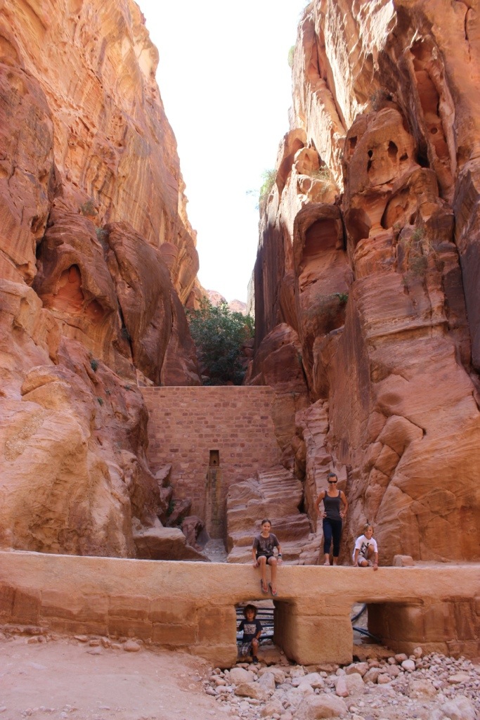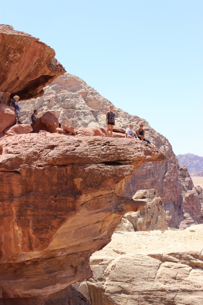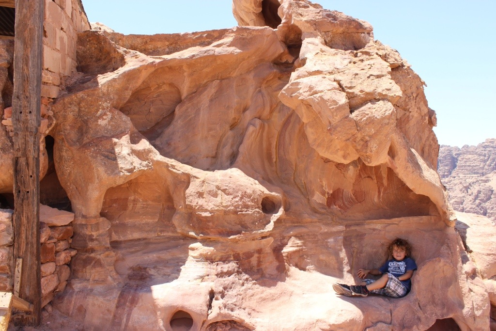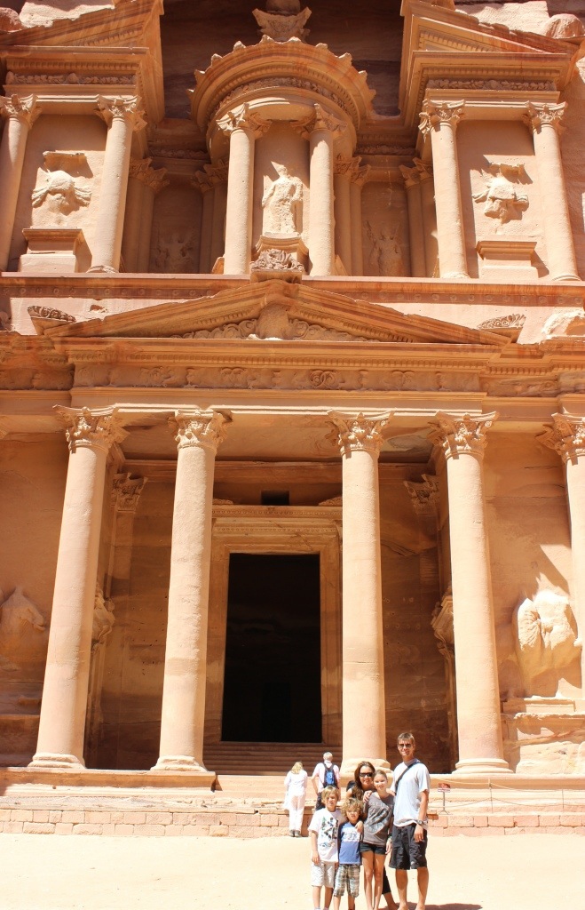 Petra has been inhabited since prehistoric times. It is a Nabataean caravan-city, situated between the Red Sea and the Dead Sea. At one point, it was an important crossroads between Arabia, Egypt and Syria-Phoenicia. Petra is half-built, half-carved into the rock and is surrounded by mountains and lots of passages and gorges. It is one of the world’s most famous archaeological sites. We spent a little over eight hours hiking around. We even hiked up 950 steps to get to a structure called “the monastery.” I played the Indiana Jones theme song on our ipad while the kids explored a building called “the treasury.” So fun.