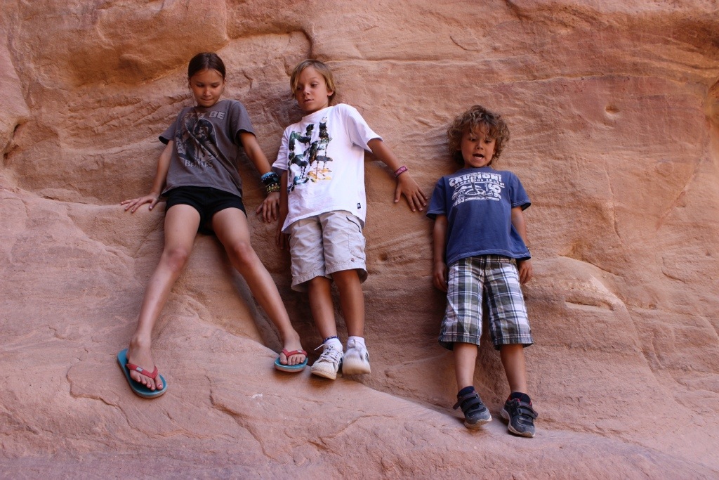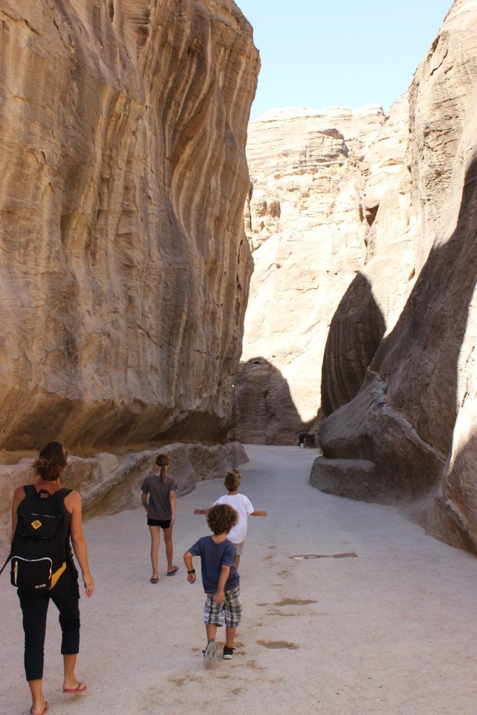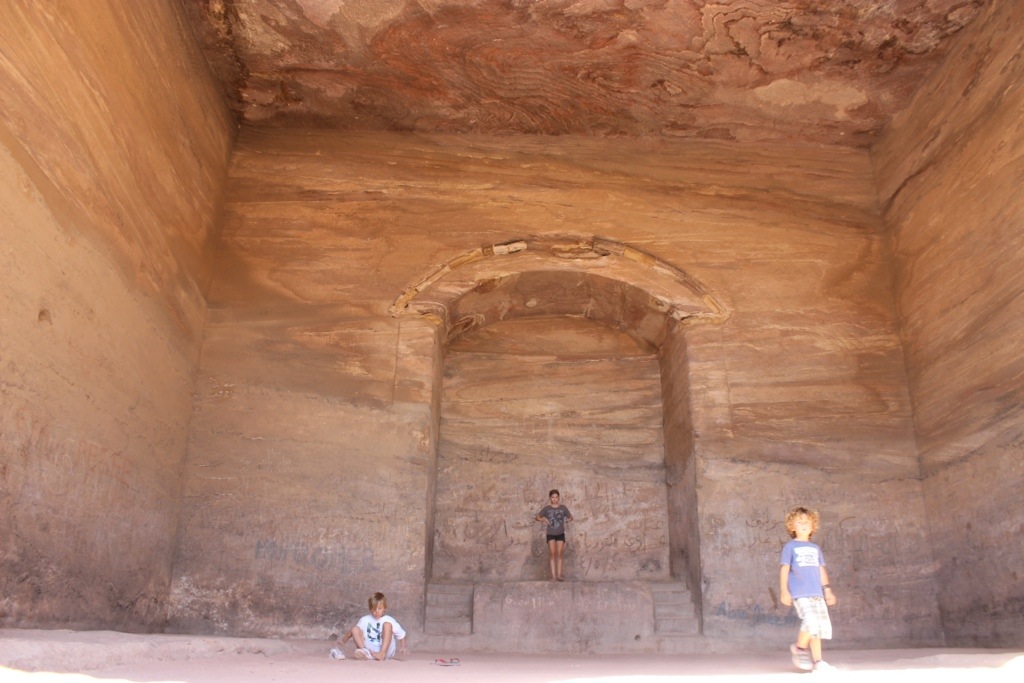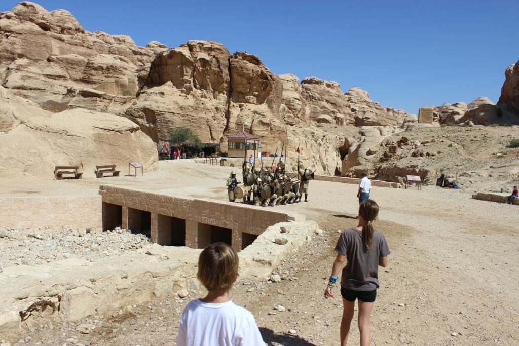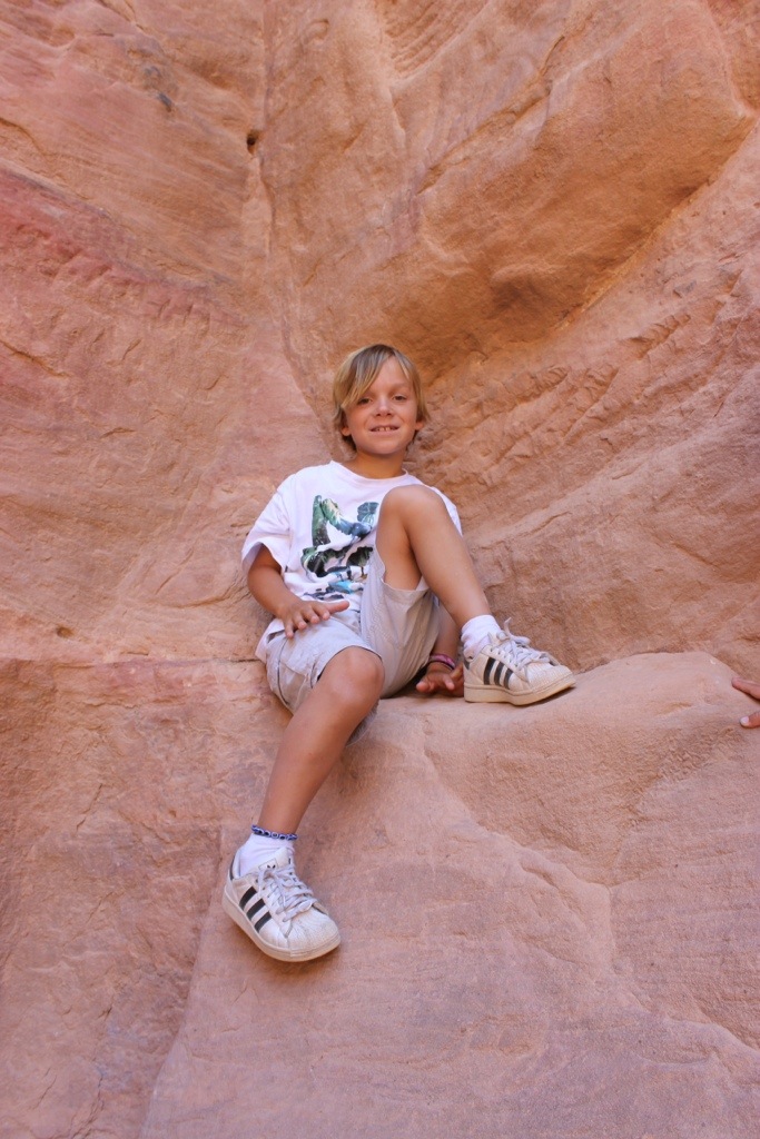 Petra has been inhabited since prehistoric times. It is a Nabataean caravan-city, situated between the Red Sea and the Dead Sea. At one point, it was an important crossroads between Arabia, Egypt and Syria-Phoenicia. Petra is half-built, half-carved into the rock and is surrounded by mountains and lots of passages and gorges. It is one of the world’s most famous archaeological sites. We spent a little over eight hours hiking around. We even hiked up 950 steps to get to a structure called “the monastery.” I played the Indiana Jones theme song on our ipad while the kids explored a building called “the treasury.” So fun.