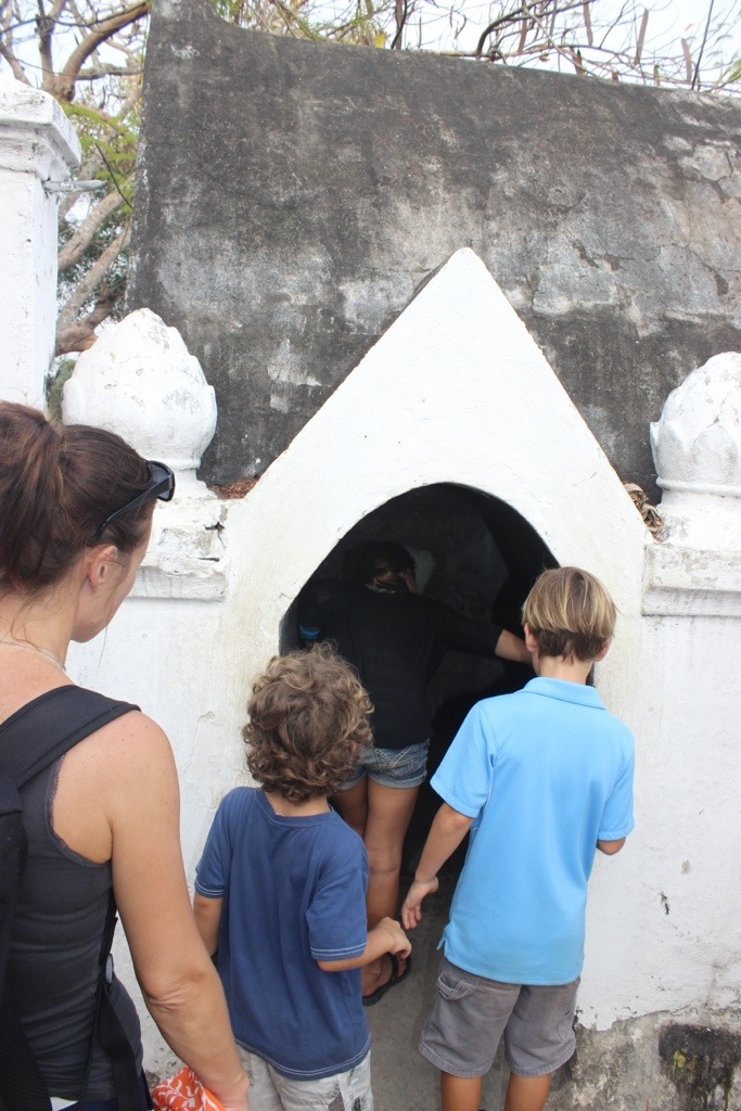 Here is us walking to a little portal. Signs all around say that it’s Buddha’s footprint inside- he must have been a huge dude because the size of the foot is about as tall as Emerson. I don’t want to be a negative Nelly- so you’ll have to travel here and judge for yourself whether or not you think it’s the real deal. We all had our doubts.