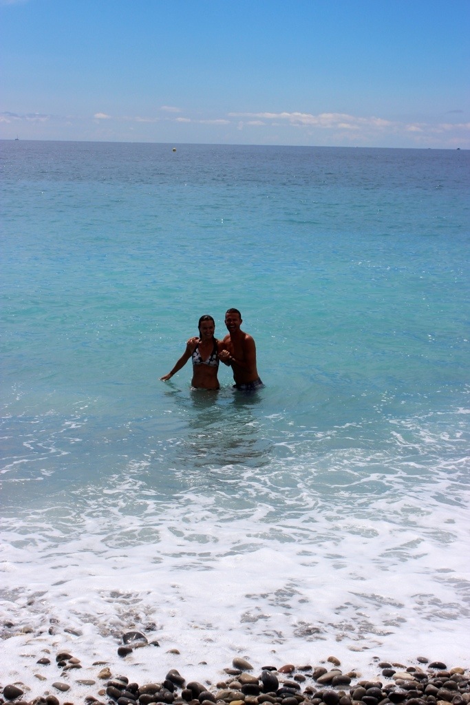 The Côte d’Azur is the Mediterranean coastline of the southeast corner of France. I have never seen water this beautiful- so many brilliant shades of blue! Jesse really wanted to go swimming, but the water was freezing! Afterwards, I was glad I jumped in, too. It was very ‘refreshing.’ It helped keep us alert for the ride to Barcelona!