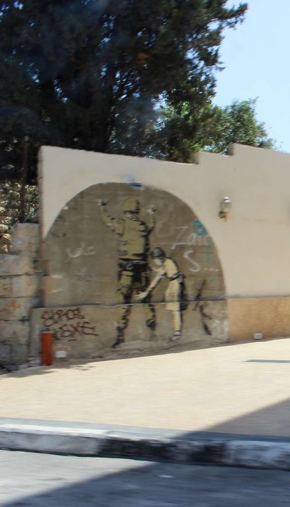 There is a more famous one that I got a quick picture of as we were driving by. It was done by an artist named Banksy and it is of a little girl patting down a soldier. Because of “security risks” it is extremely difficult for people from certain ethnic groups to travel in certain areas. We got through checkpoints relatively easily by showing our US passports. They obviously know we are tourists and aren’t going to stir up any problems in regions that are oftentimes portrayed as being extremely volatile. I don’t think many tourists roll through Palestine- but when we did, we didn’t feel threatened or scared in the least. It is one of my top five experiences of our adventure and I would encourage others to go there.